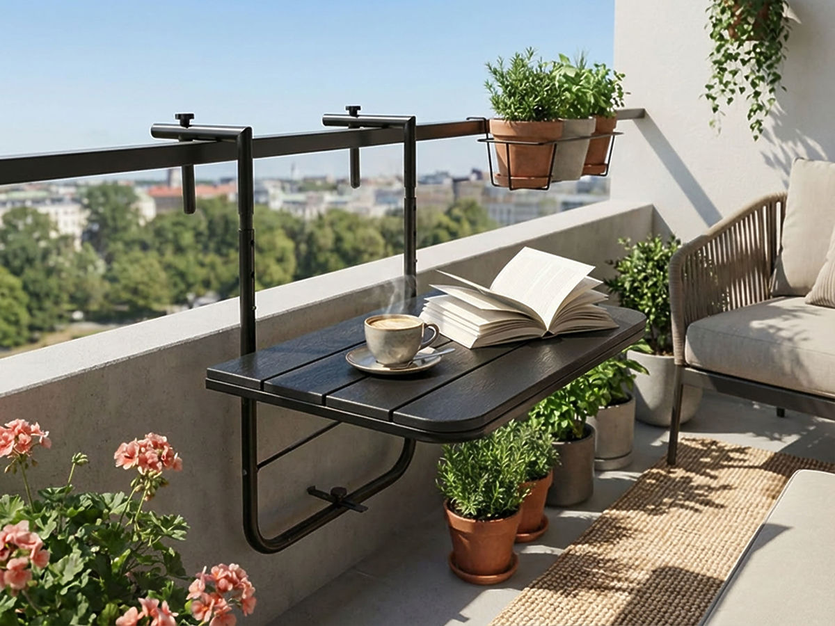 Černý balkonový stolek Aretto je ideální volbou pro ty, kteří chtějí plně využít prostor balkonu, i když je malý. Jeho hlavní předností je skládací konstrukce, díky které lze stolek rychle složit, když není potřeba. To šetří místo a udržuje pořádek, což ocení zejména majitelé malých bytů. Stolek poskytuje stabilní plochu na šálek kávy, knihu nebo notebook, usnadňuje organizaci každodenního odpočinku a činí balkon praktickým prodloužením interiéru. Pevné provedení a univerzální tvar zaručují pohodlí při používání, estetický vzhled a dlouhou životnost.