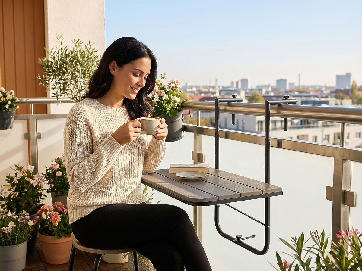 Šedý balkonový stolek Aretto je ideální volbou pro ty, kteří chtějí plně využít prostor balkonu, i když je malý. Jeho hlavní výhodou je skládací konstrukce, díky které lze stolek rychle složit, když není potřeba. To šetří místo a udržuje pořádek, což ocení zejména majitelé malých bytů. Stolek poskytuje stabilní povrch pro šálek kávy, knihu nebo notebook, usnadňuje organizaci každodenního odpočinku a činí balkon praktickým prodloužením interiéru. Solidní provedení a univerzální tvar zaručují pohodlí při používání, estetický vzhled a trvanlivost na dlouhou dobu.