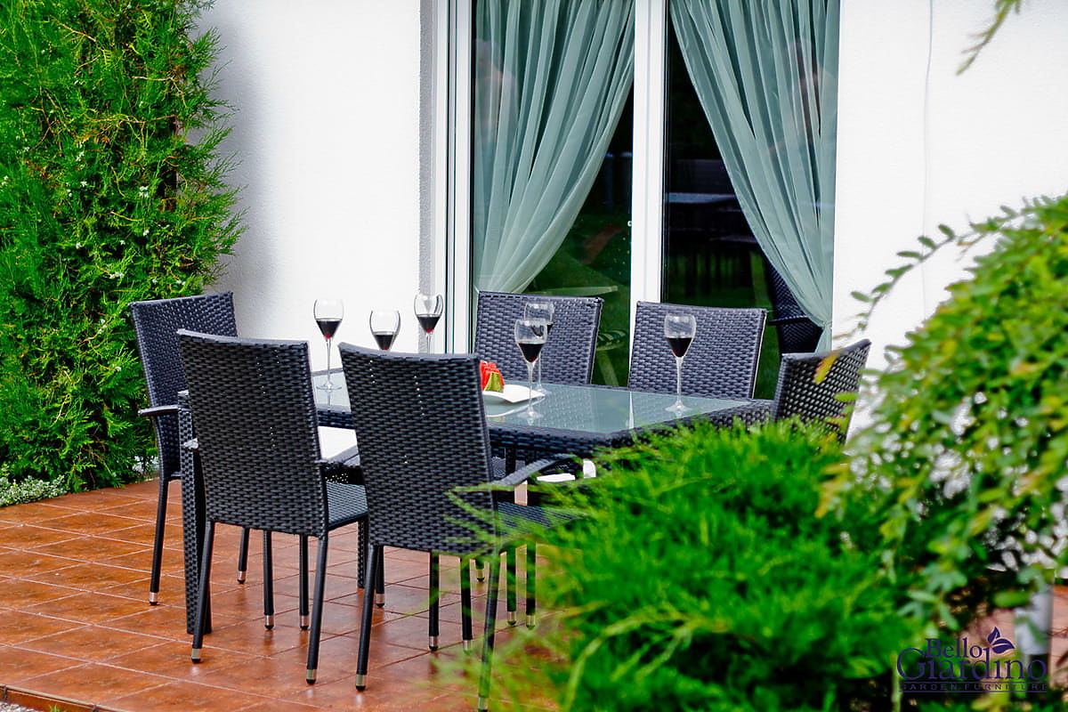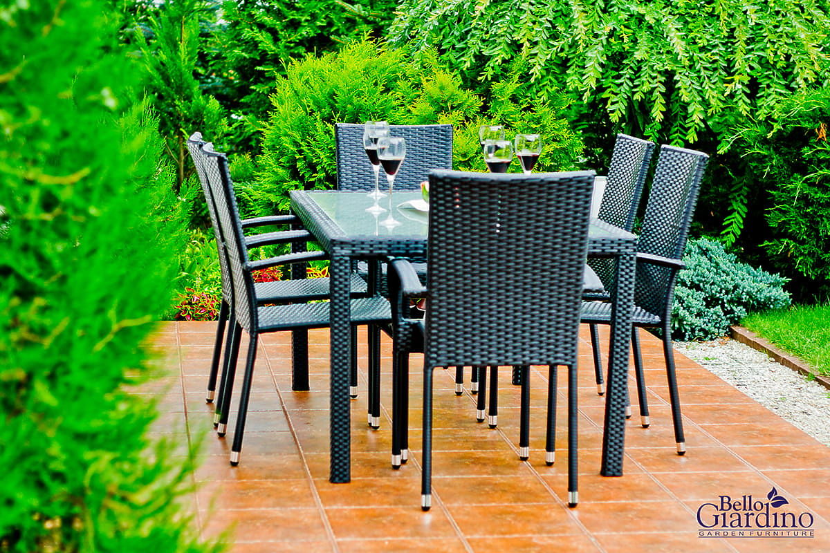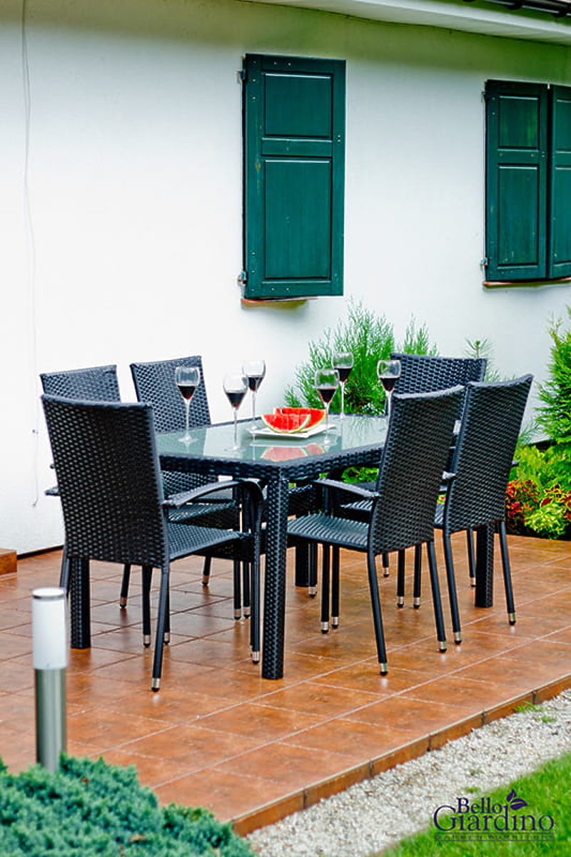 Lukafurniture.cz » Zahradní nábytek / Zahradní sety / Sada jídelního nábytku z technoratanu (stůl 150×90 cm + 6 × židle) AVVICENTE, černá