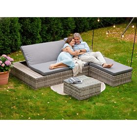 Sada zahradního nábytku DIABOLICO je kvintesencí modernosti a funkčnosti, nabízející dokonalou kombinaci vysoce kvalitního hliníku a technoratanu. Tato unikátní kombinace materiálů nejenže zajišťuje nábytku mimořádnou odolnost vůči dešti, mrazu a extrémním teplotám, ale také jim dodává výjimečný styl. Zahradní nábytek sestávající z pufu, stolku a postele, která může také sloužit jako pohovka, je perfektním řešením pro každého, kdo si cení jak estetiky, tak praktičnosti. Nastavitelná opěradla umožňují rychlou a snadnou transformaci pohovky na postel, což zvyšuje všestrannost sady. Sada odpočinkového nábytku DIABOLICO, se širokým pletením v odstínech šedi a elegantně dokončenými polštáři, není jen nábytkem, ale také uměleckým dílem, které dodá třídě a jedinečnému charakteru každému venkovnímu prostoru. Barva sady DIABOLICO: šedý melír, nejednotný Pletení: technoratan 15mm x 1,2mm, hladká struktura Konstrukce nábytku: hliníková Sada složená ze 3 prvků: 1 x postel/pohovka: délka: 227 cm šířka: 114 cm výška: 30 cm postel pro 2 osoby: 3-stupňová regulace opěradla postele pohovka pro 3 osoby: 4-stupňová regulace opěradla pohovky Maximální výška při zvednutých 3 opěradlech pohovky (od sedáku): 42 cm 1 x puf: délka: 78 cm šířka: 58 cm výška: 30 cm 1 x stolek (se skleněnou, průhlednou deskou z 5mm bezpečnostního skla): délka: 54 cm šířka: 54 cm výška: 30 cm Výška sedáku pohovky/postele a pufu: 30 cm + 8 cm polštář Postel je zasílána v 1 kartonu o rozměrech 230x32x117 cm, váha 35 kg Polštáře v šedé barvě v ceně sady. Všechny mají snímatelné potahy na zip, vyrobené z outdoorového materiálu (100% polyester), které lze prát při nízkých teplotách. Potahy na polštáře jsou ušity z vysoce kvalitní tkaniny pokryté teflonem, který je chrání před vlhkostí. Výplň polštářů je vyrobena z vysoce kvalitní čalounické pěny (středně tvrdé - T25), která zabraňuje deformacím. Tloušťka polštářů: 8 cm Technoratan je odolný vůči škodlivým vlivům povětrnostních podmínek, ale abyste si mohli ještě déle užívat neměnný vzhled nábytku, doporučujeme zakoupit ochranný obal. Obal v tmavě šedé barvě je jednokusový a má dole stahovací šňůrku, propletenou kovovými očky. Všechny obaly jsou šité na zakázku a doba realizace je cca 21 pracovních dnů. Představte si zahradní nábytek, který překračuje vaše očekávání ve všech ohledech – od odolnosti po design. To je BELLO GIARDINO, kde každý detail má význam a luxus se setkává s funkčností: Nezničitelná kvalita: Náš syntetický ratan je zárukou, že nábytek vydrží roky, aniž by ztratil na kráse či trvanlivosti. Odolnost vůči počasí: Náš nábytek čelí nejtěžším povětrnostním podmínkám, od žhavého slunce po mrazivé zimy, zůstávající stále krásný. Luxusní komfort: Silné, měkké polštáře zvou k relaxaci, nabízející komfort, který je těžké najít jinde. Lehkost a pevnost: Hliníková konstrukce spojuje to nejlepší z obou světů – je lehká, ale mimořádně stabilní. Design, který okouzlí: Každý prvek našeho nábytku byl navržen s ohledem na estetiku a funkčnost, aby se hodil do každého prostředí. Ať už jste milovníkem minimalismu, nebo si ceníte bohatých, elegantních aranžmá, náš nábytek splní vaše očekávání, překračující hranice běžné funkčnosti a estetiky. Zajišťujeme, že i ti nejodolnější zákazníci neodolají pohodlí a stylu, který nabízí BELLO GIARDINO. Udělejte z vaší zahrady, terasy či balkonu oázu relaxace a elegance, kterou jste vždy chtěli mít. Nečekejte, objevte BELLO GIARDINO ještě dnes a proměňte své venkovní prostory v místa, o kterých jste vždy snili. Fotografie od zákazníků