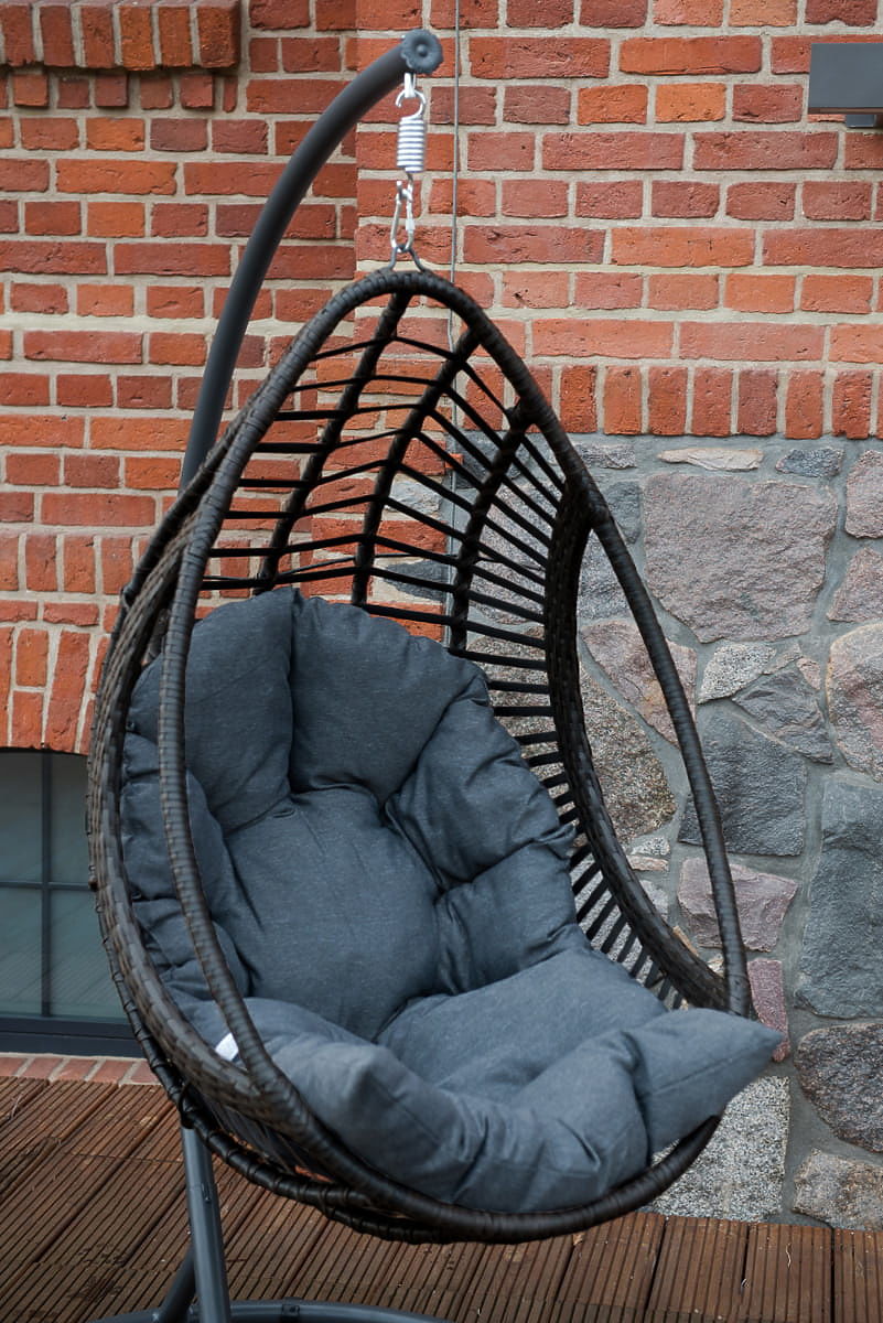 Toto extravagantní závěsné křeslo je výrazem luxusu a komfortu, navržené pro ty, kteří si cení nejen pohodlí, ale i jedinečného designu. Závěsné křeslo z technoratanu se ideálně hodí na balkon nebo terasu, přitahuje pozornost svým originálním tvarem a moderním designem, který obohatí každý venkovní prostor. Ocelový rám, opletený vysoce kvalitním technoratanem, zaručuje nejen estetiku, ale i odolnost vůči nepříznivým povětrnostním vlivům, což zajišťuje dlouhodobé užívání. Kokon z technoratanu, díky své neobvyklé formě, není jen nábytkem, ale také uměleckým dílem, které zvyšuje standard každé aranžace, činí ji výjimečnou a neopakovatelnou. Je to ideální volba pro ty, kteří chtějí ve svém venkovním prostoru spojit funkčnost s neobyčejnou estetikou. Barva: tmavě šedá, nejednotná (viz galerie produktu) Pletení: technoratan 7-8mm x 1.2mm, hladká struktura Konstrukce: ocelová 1 x kokon: šířka: 81 cm hloubka sedáku: 60 cm výška kokonu: 120 cm průměr základny: 105 cm celková výška: 195 cm Křeslo je zasíláno na 1 paletě o rozměrech 120x80x180 cm, váha 45 kg Kokon nevyžaduje montáž. 10 cm polštář v šedé barvě je v ceně kokonu. Rám kokonu nevyžaduje použití upevňovacího pásu. Pravidla užívání KOKONU BELLISSIMO Bello Giardino: Maximální zatížení: 100 kg. Děti mladší 13 let mohou kokon používat pouze pod dohledem dospělých. Doporučuje se zachovat zvláštní opatrnost, aby se kokon nepřevrátil. Technoratan je odolný vůči nepříznivým povětrnostním vlivům, ale abyste si mohli déle užívat neměnný vzhled nábytku, doporučujeme užívání a skladování produktu pod střechou nebo zakoupení ochranného potahu. Potah v tmavě šedé barvě je jednodílný a má dole stahovací šňůru, propletenou kovovými očky. Všechny potahy jsou šité na zakázku a doba realizace je cca 21 pracovních dní. Představte si zahradní nábytek, který překračuje vaše očekávání v každém ohledu – od odolnosti po design. Toto je BELLO GIARDINO, kde každý detail má význam a luxus se setkává s funkčností: Nezničitelná kvalita: Náš syntetický ratan je zárukou, že nábytek vydrží léta, aniž by ztratil na kráse či trvanlivosti. Odolnost vůči počasí: Naše nábytek čelí nejtěžším povětrnostním podmínkám, od spalujícího slunce po mrazivé zimy, zůstávajíce stále krásné. Luxusní komfort: Silné, měkké polštáře zvou k relaxaci, nabízejí komfort, který je těžké najít jinde. Lehkost a odolnost: Hliníková konstrukce spojuje to nejlepší z obou světů – je lehká, ale mimořádně stabilní. Design, který okouzlí: Každý prvek našeho nábytku byl navržen s ohledem na estetiku a funkčnost, aby se hodil do každého prostředí. Ať už jste milovníkem minimalismu, nebo si ceníte bohatých, elegantních aranžmá, náš nábytek splní vaše očekávání, překračující hranice běžné funkčnosti a estetiky. Zajišťujeme, že i ti nejodolnější zákazníci neodolají pohodlí a stylu, který nabízí BELLO GIARDINO. Udělejte ze své zahrady, terasy nebo balkonu oázu relaxace a elegance, kterou jste vždy chtěli mít. Nečekejte, objevte BELLO GIARDINO ještě dnes a proměňte své venkovní prostory v místa, o jakých jste vždy snili. Fotografie nábytku od našich zákazníků: