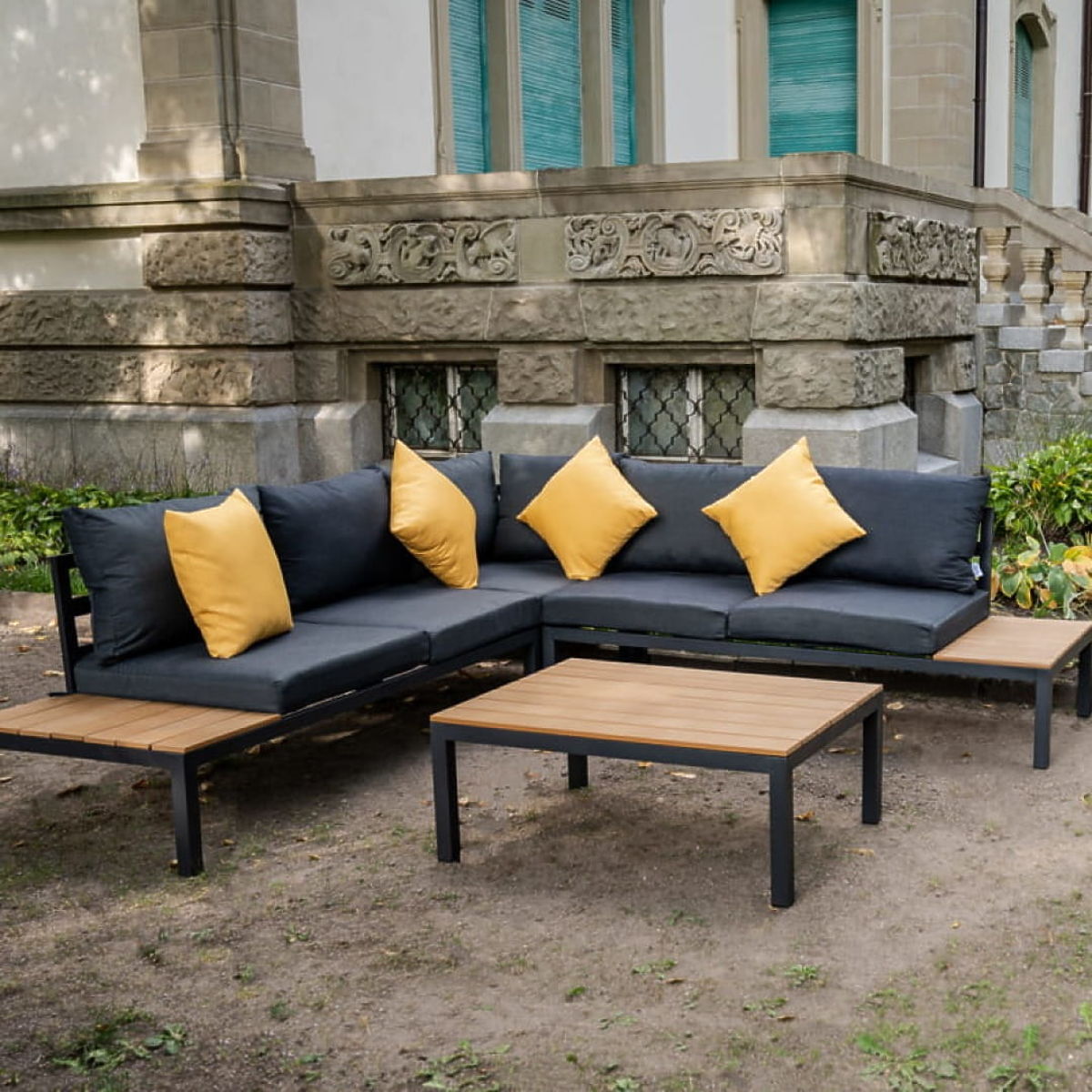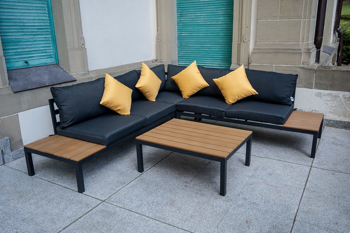 Velký hliníkový rohový set se stolkem MASSIMO černý