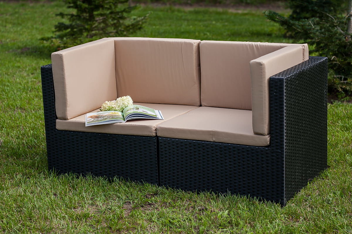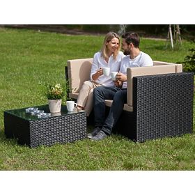 Dvouosobová pohovka s technoratanovým stolkem TINTO černá