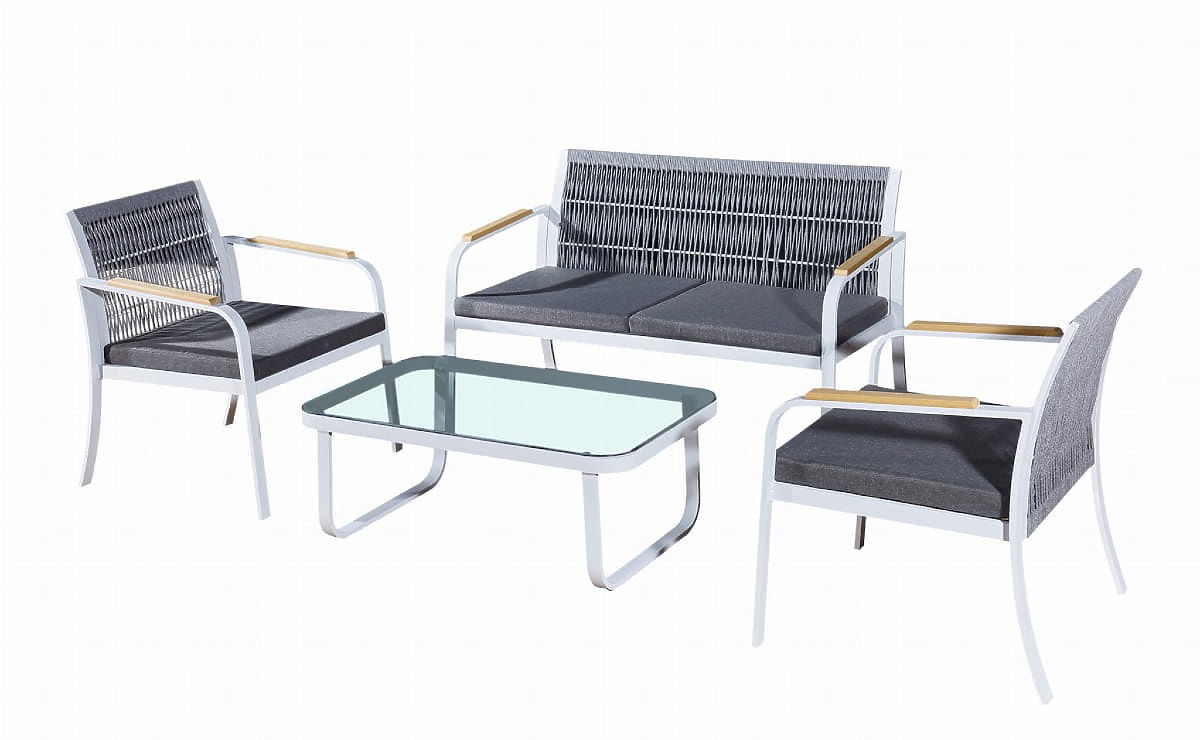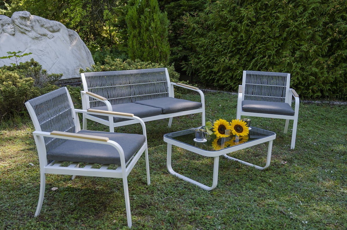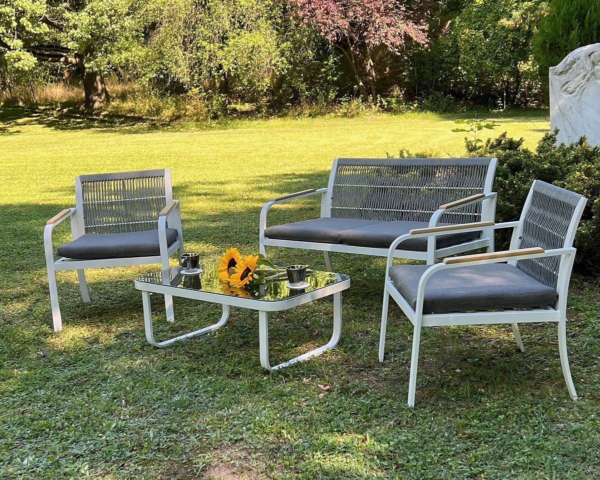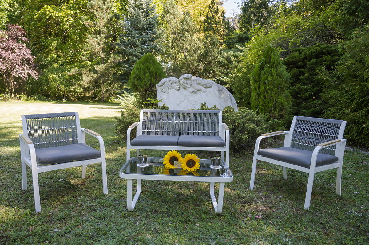 Sada zahradního nábytku z hliníku (2 x křeslo, pohovka + stolek) RARO bílá, šedá