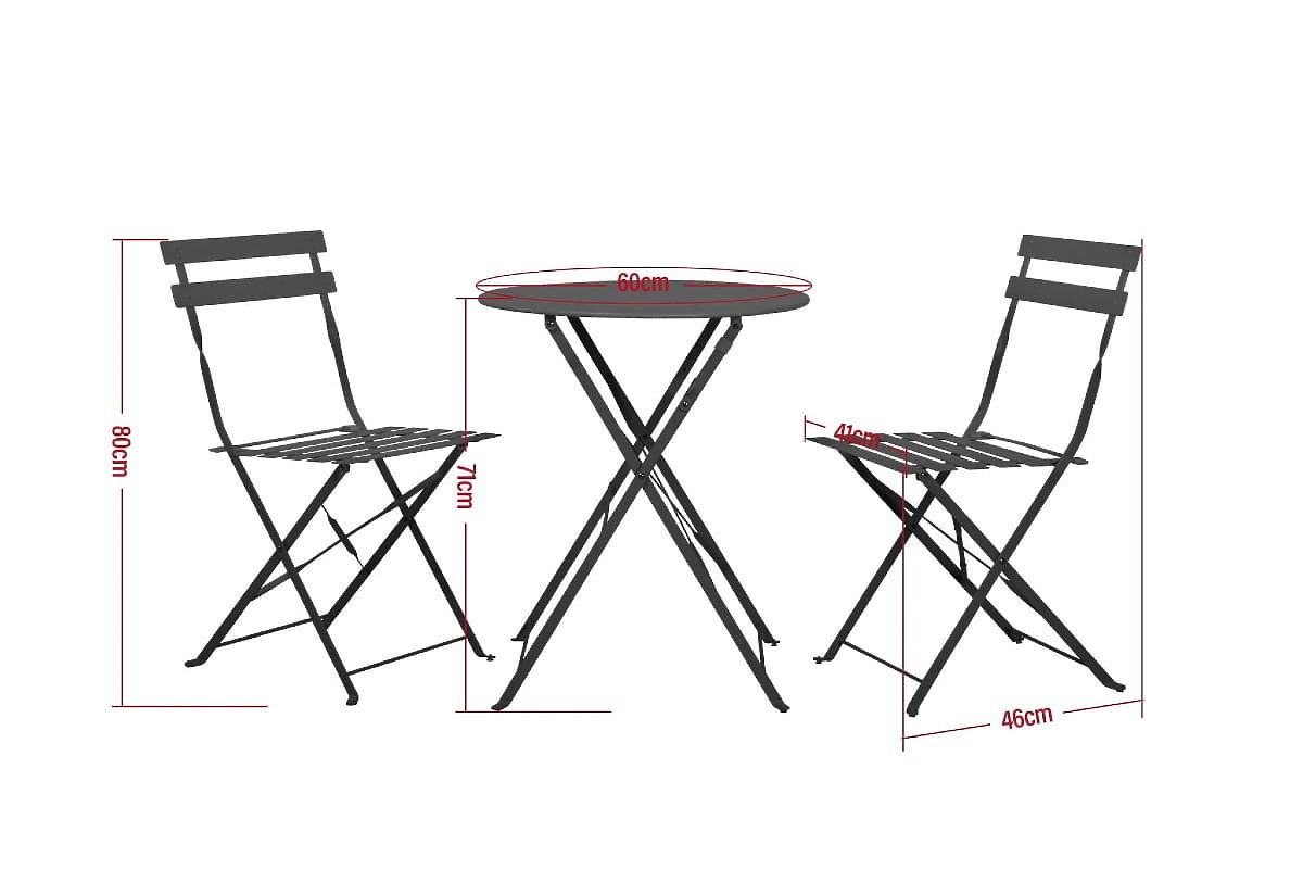 Sada balkonového nábytku (2 x skládací židle + stůl) SEMPLICI Ocel Černá