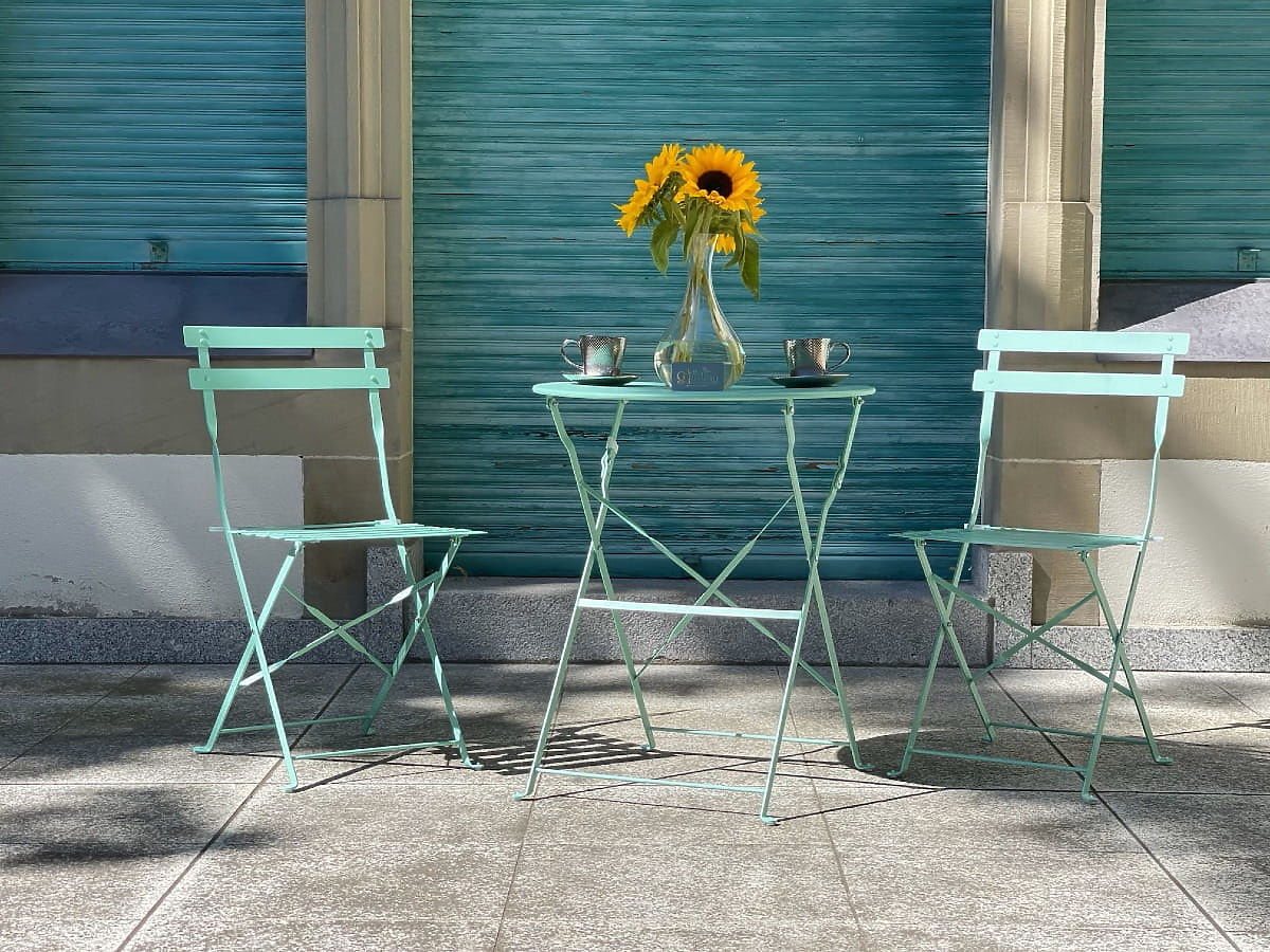 Ocelový Balkonový Nábytek (2 x skládací židle + stůl) SEMPLICI Mátový