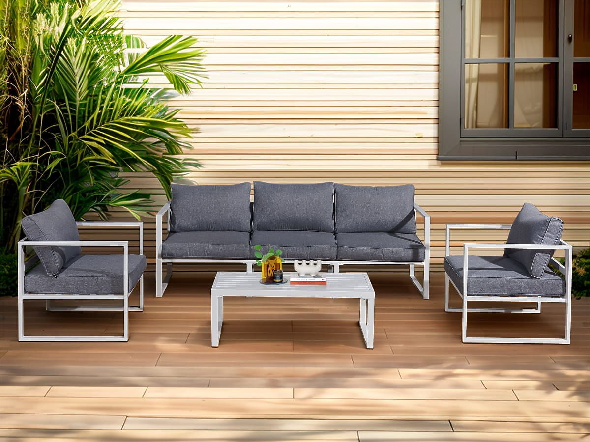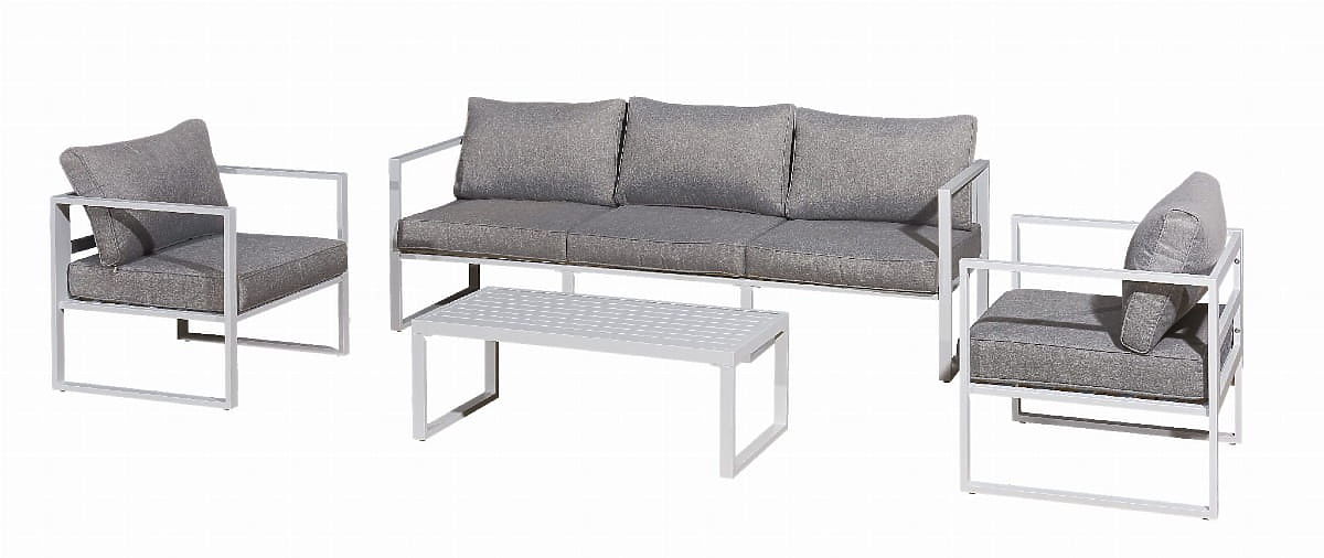 Sada zahradního nábytku (velká 3místná pohovka, 2 x křeslo + stolek) MOSTRARE bílý hliník, šedé polš