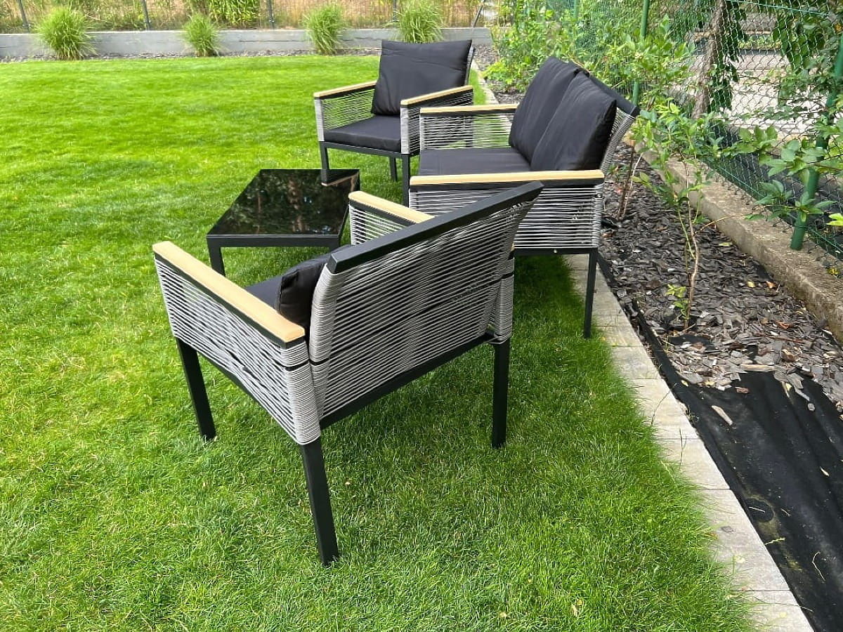Malá sada nábytku na balkon (2 x křeslo, pohovka + stolek) CORTO černý hliník, šedý technoratan