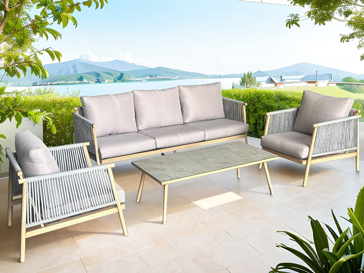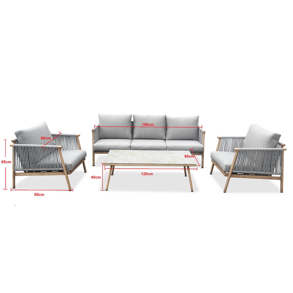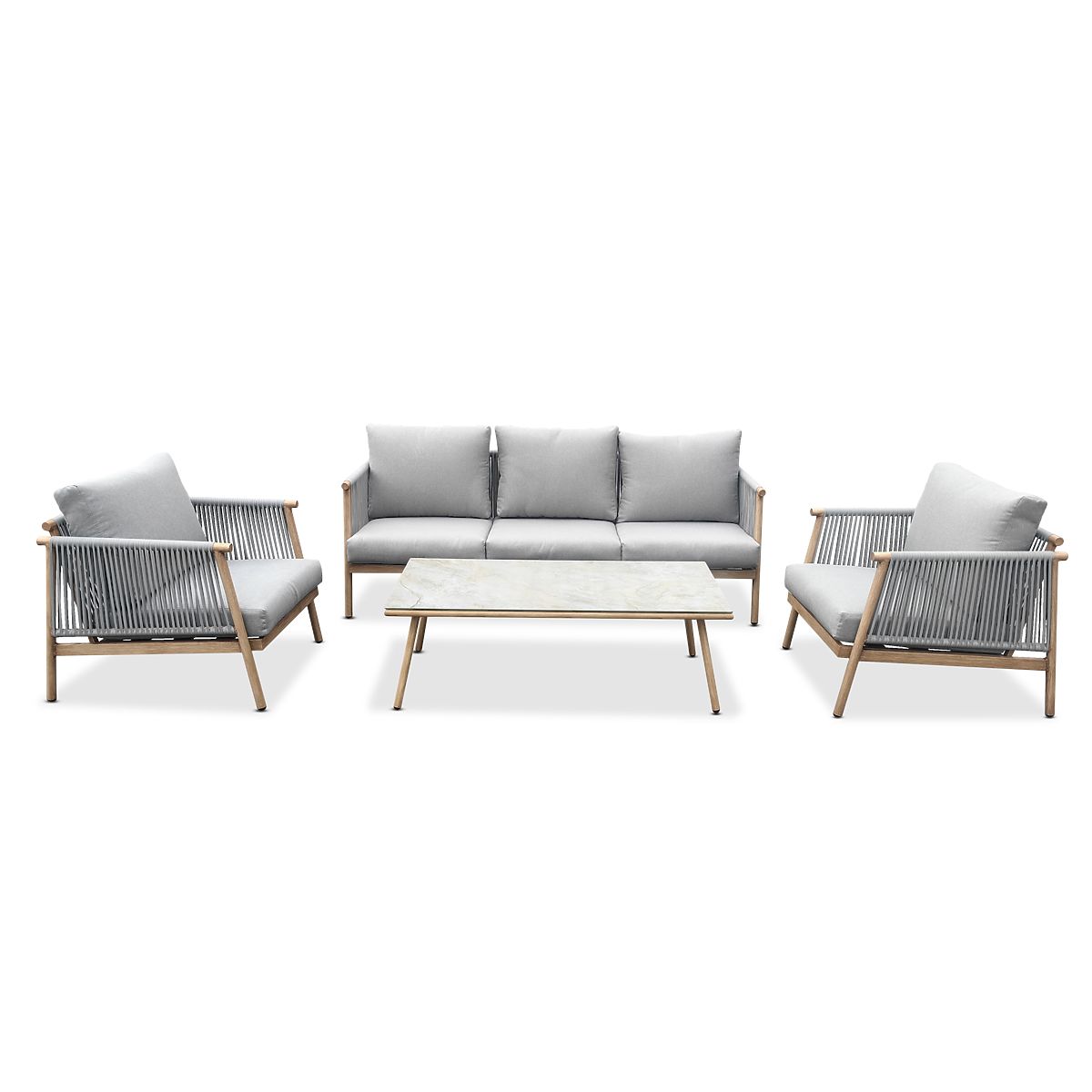 Hliníková sada terasového nábytku (Velká pohovka, 2 x křeslo a stolek) BLANDO světle šedá, hliník