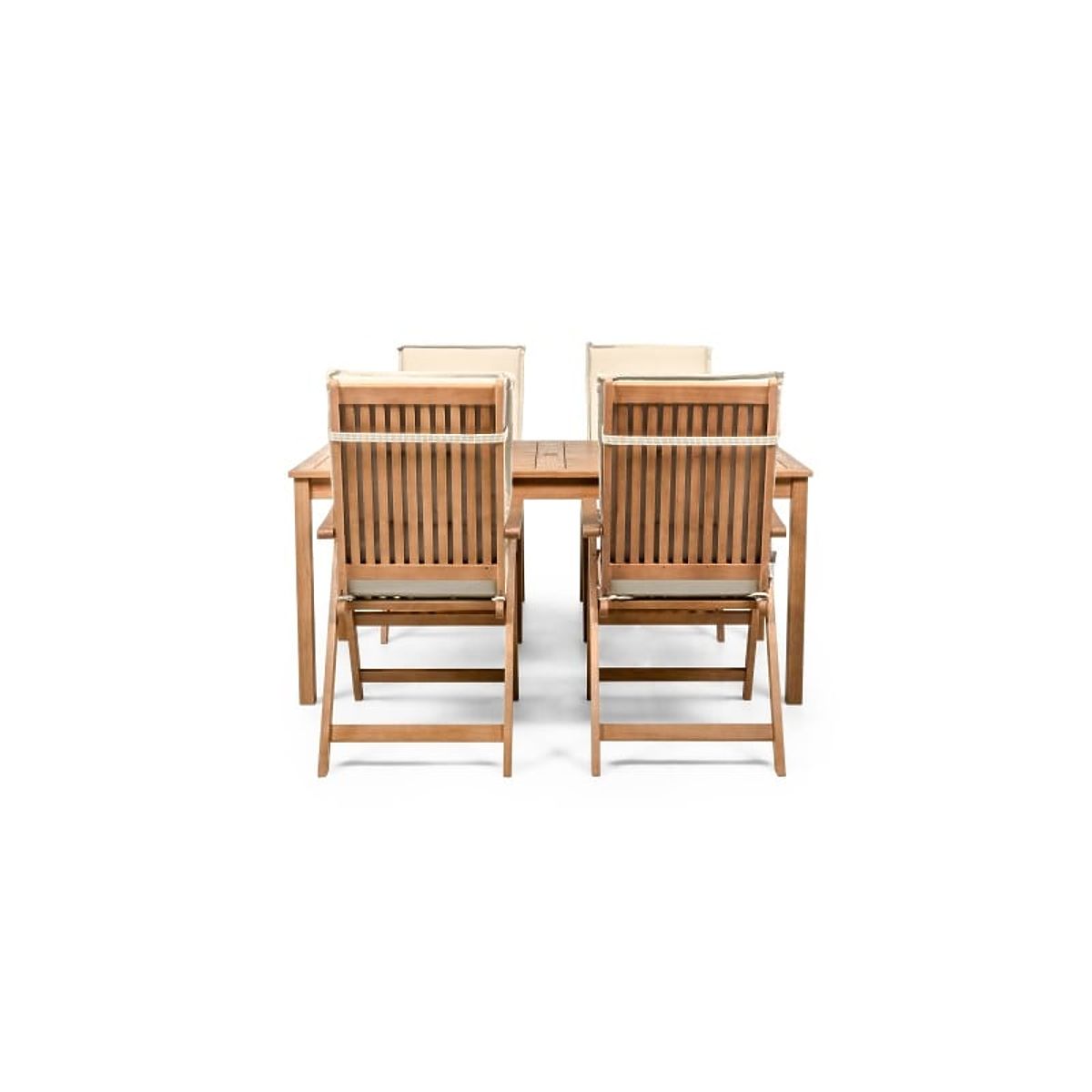 Lukafurniture.cz » Zahradní nábytek / Zahradní sety / Zahradní set Familis stůl 160 cm + 4 židle s nastavitelnými opěradly a krémovými polštáři, dřevo