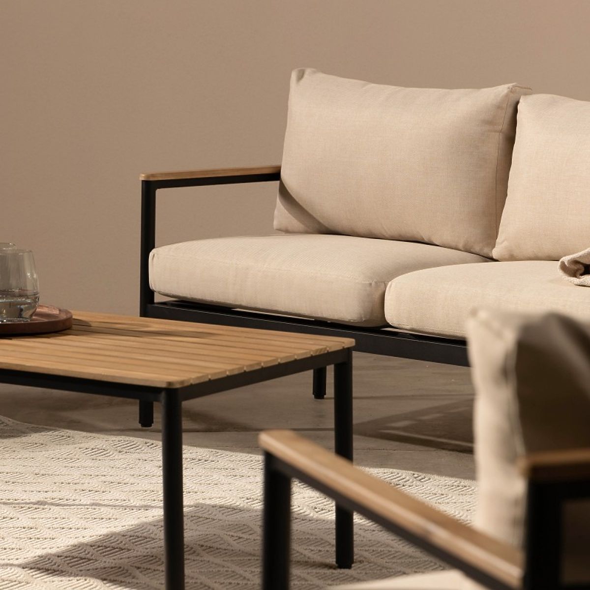 Lukafurniture.cz » Zahradní nábytek / Zahradní sety / Sada zahradního nábytku Porticello, hliníková, akáciové dřevo FSC, teakový vzhled, béžová/černá
