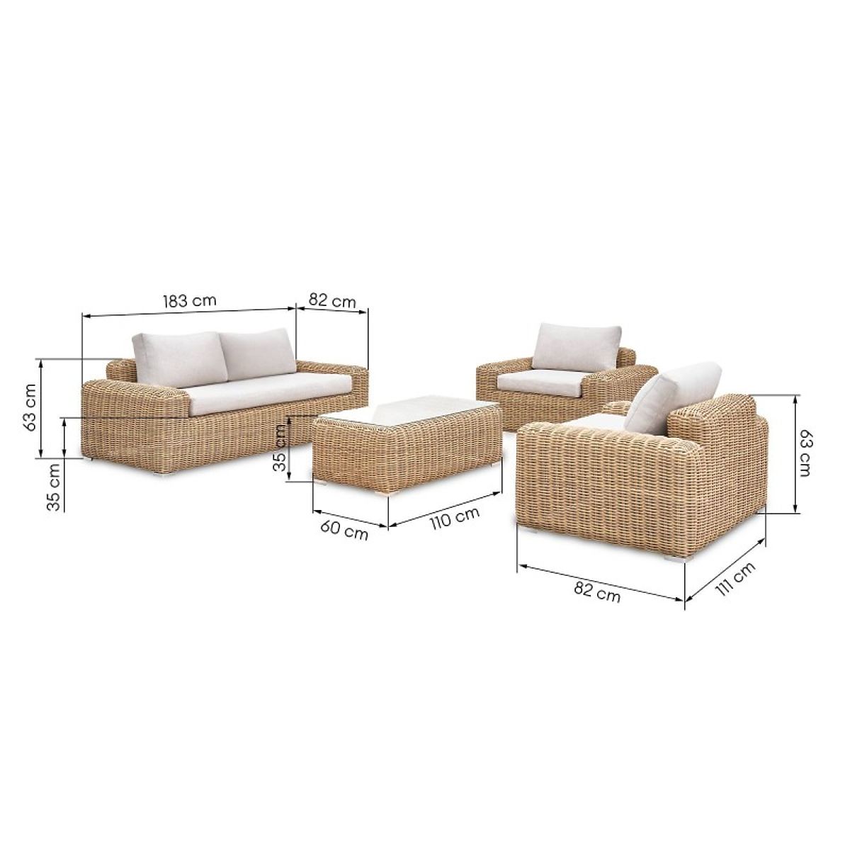 Zahradní nábytková sada Sandy je stylová kombinace, skládající se z prostorné pohovky, dvou křesel a konferenčního stolku, poskytující pohodlí a eleganci v každém venkovním prostoru. Vyrobena z vysoce kvalitního syntetického ratanu, spojuje moderní design s funkčností a nabízí komfortní odpočinek díky měkkým polštářům.