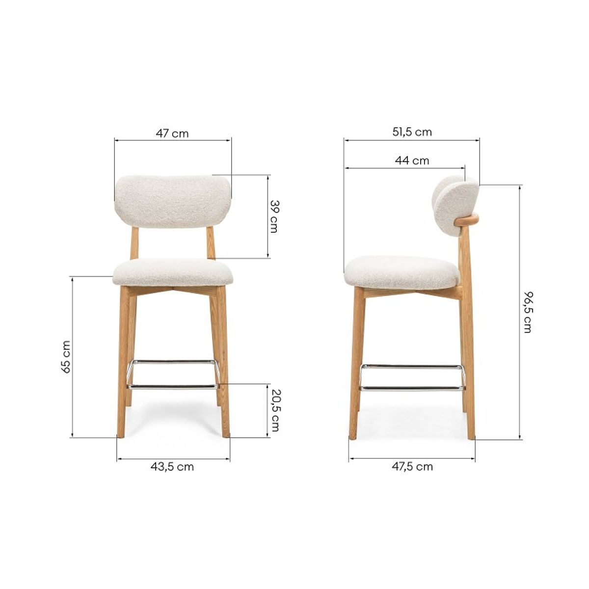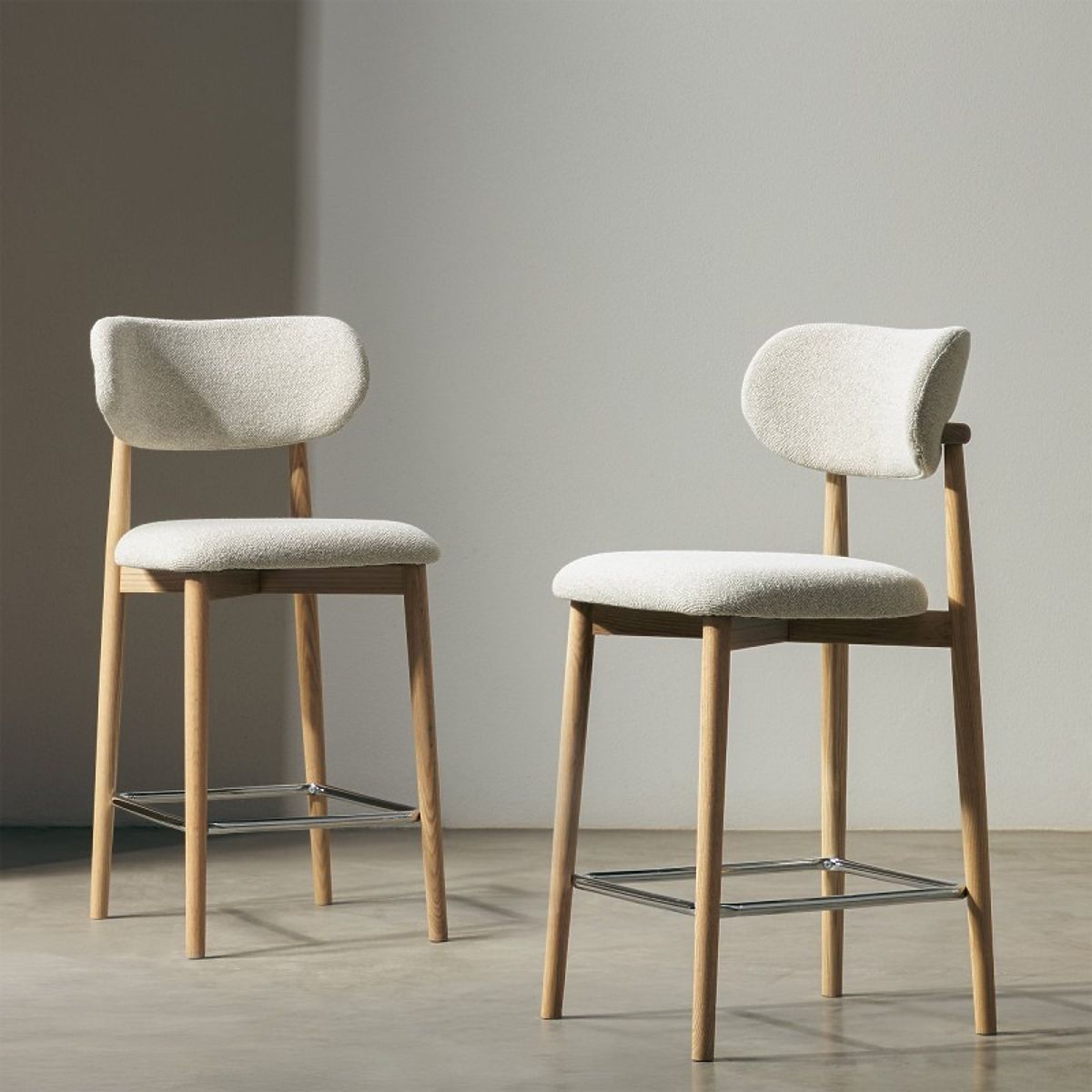Barová židle Amalfi s krémovým čalouněním a dubovými nohami. .. více
