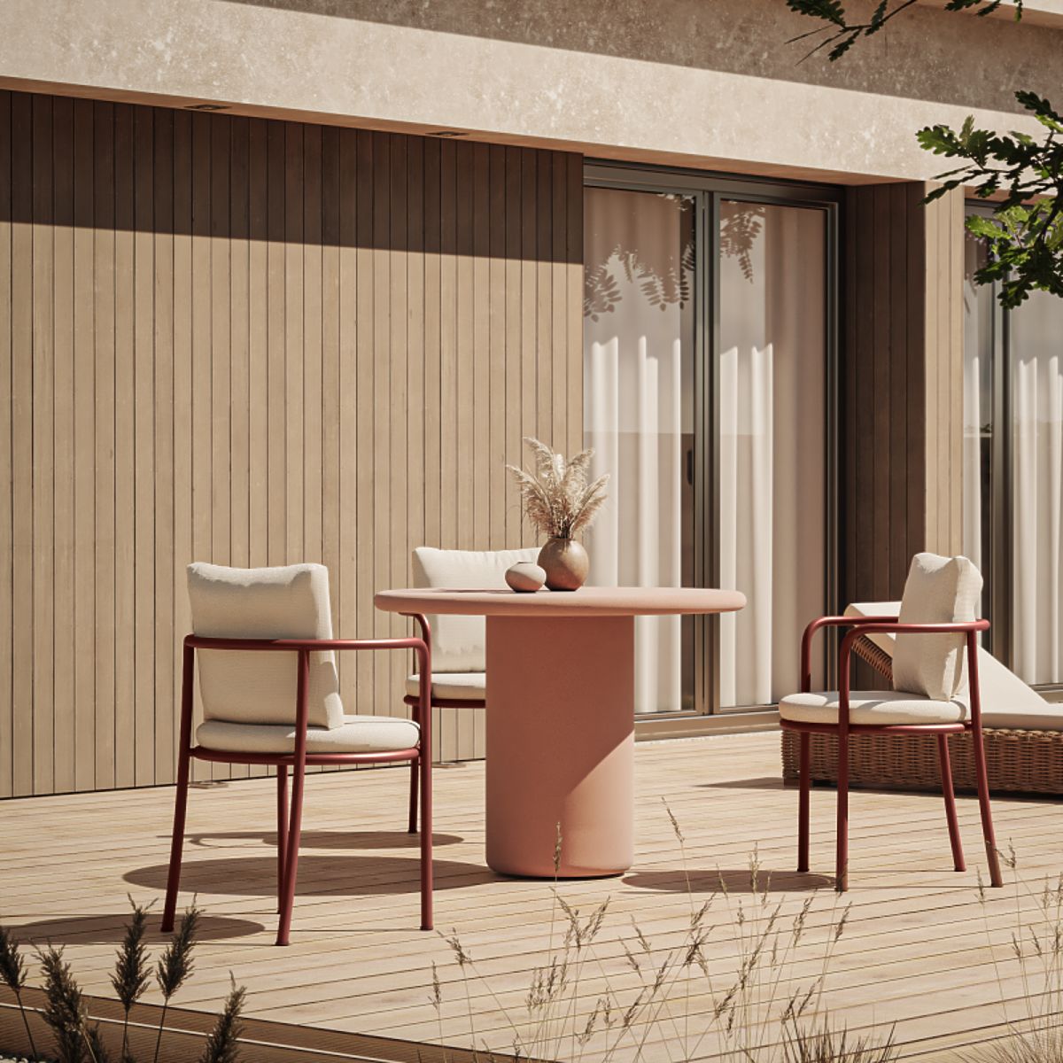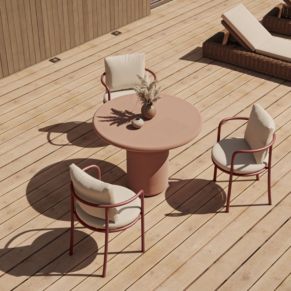 Stůl Vibonis v terakotové barvě je skutečnou ozdobou každé zahrady. Elegantní, odolný, dokonale ladí s přírodním prostředím, přináší do prostoru lehkost a harmonii. Ideální volba pro moderní aranžmá.