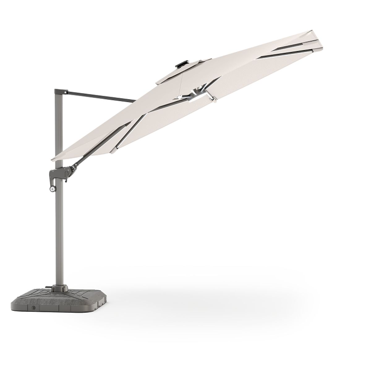 Lukafurniture.cz » Zahrada / Slunečníky a sluneční plachty / Zahradní slunečník na výložníku Shade Deluxe 4x3 m s obalem a solárním LED osvětlením, otočný