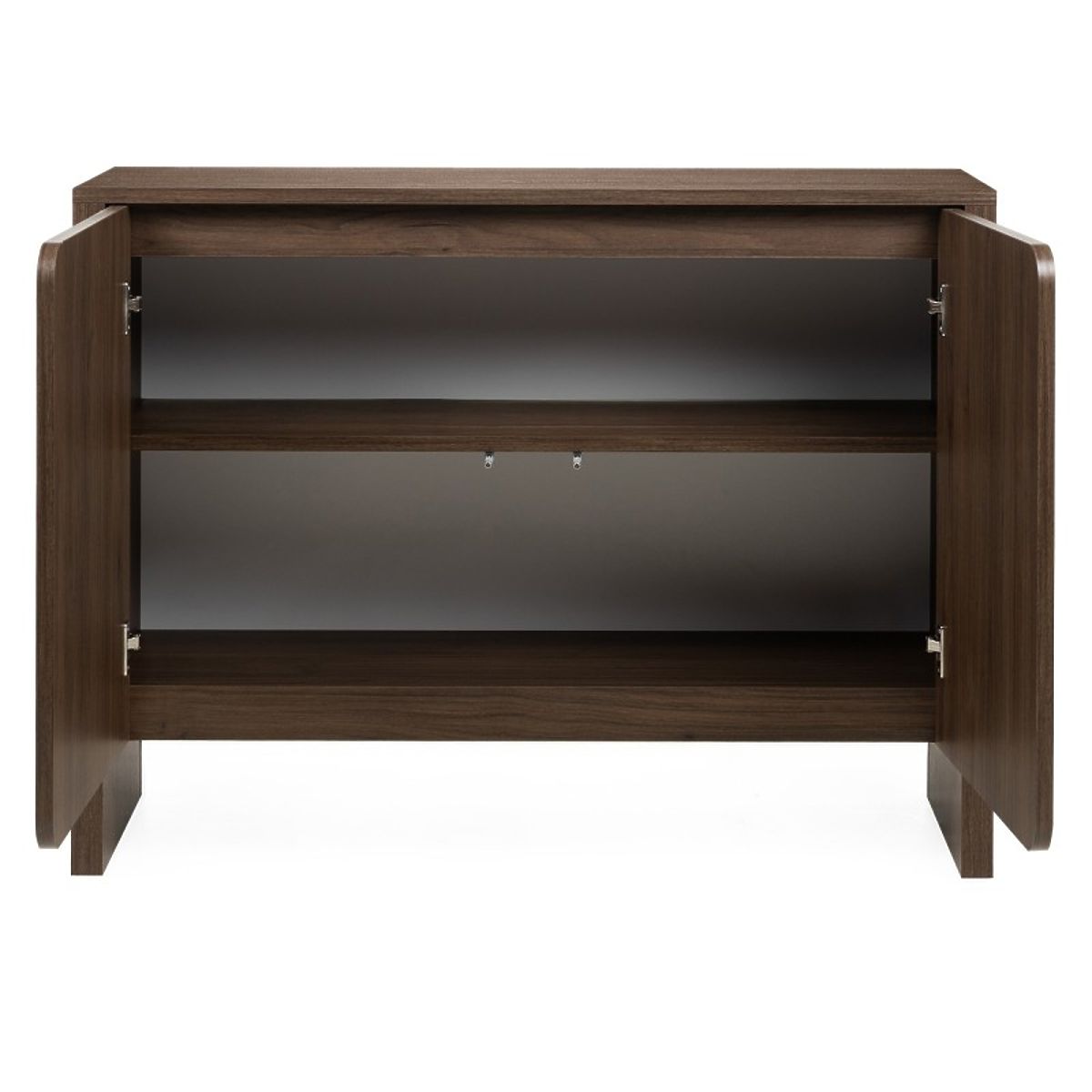 Dvoudveřová komoda Moku s ořechem villa a zaoblenými čelními plochami. .. více