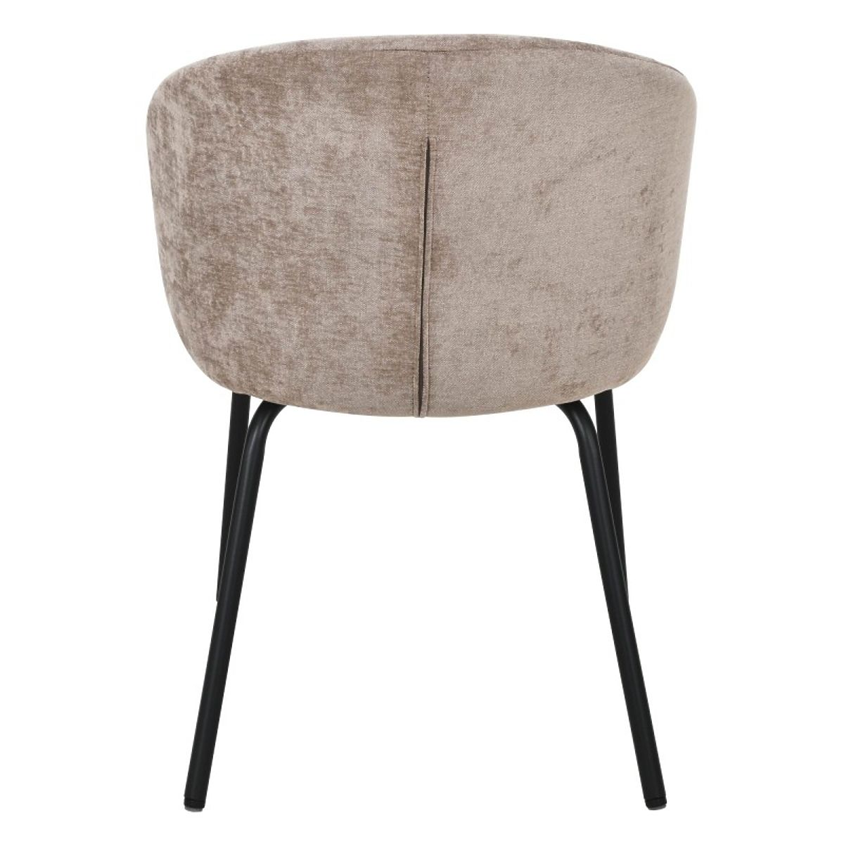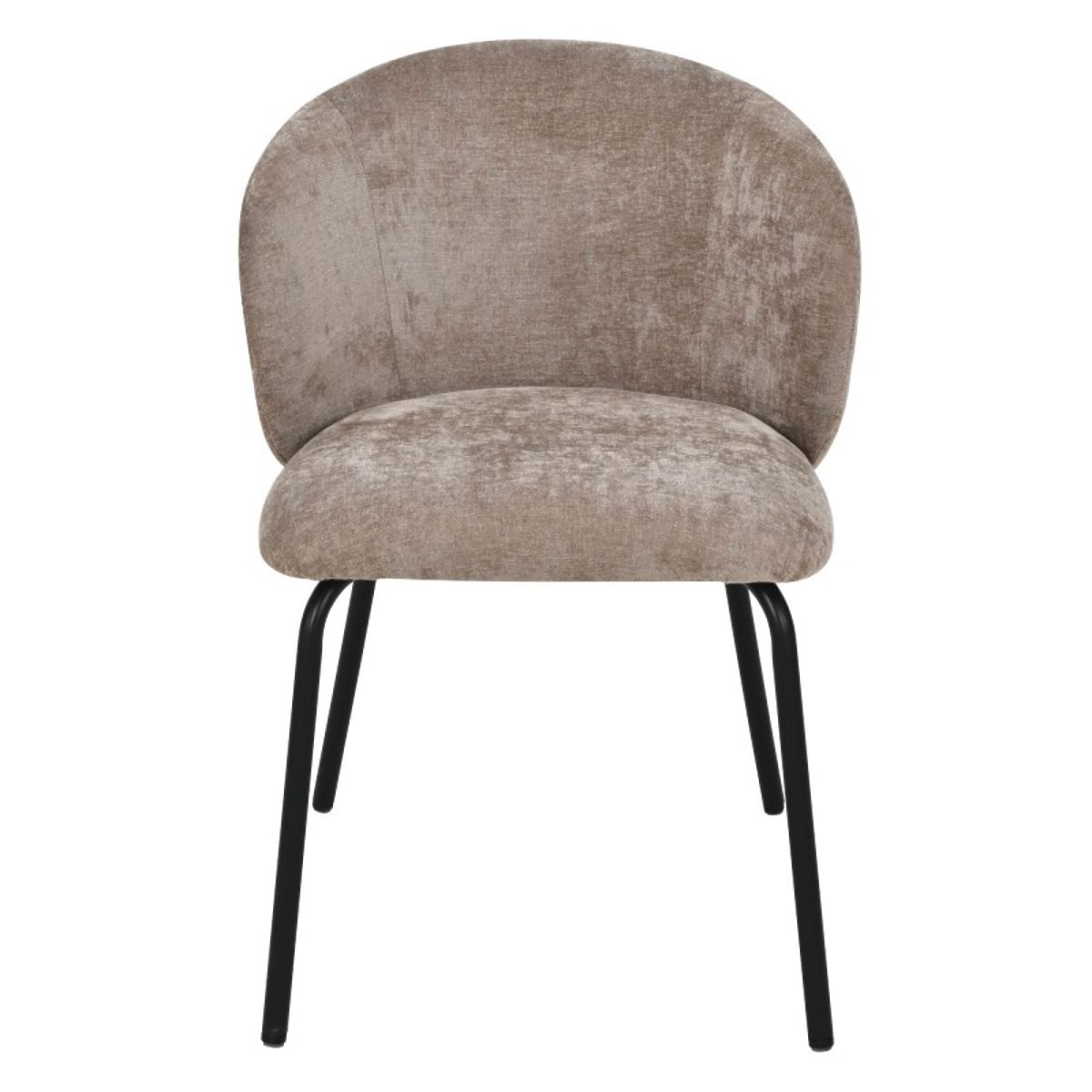 Židle Larisa kombinuje moderní eleganci s pohodlím. Její měkké sedadlo a zaoblené opěradlo jsou potaženy příjemnou hnědou látkou, která dodává každému interiéru teplo. Černé, pevné nohy poskytují výrazný kontrast a stabilitu, podtrhující její stylový charakter.