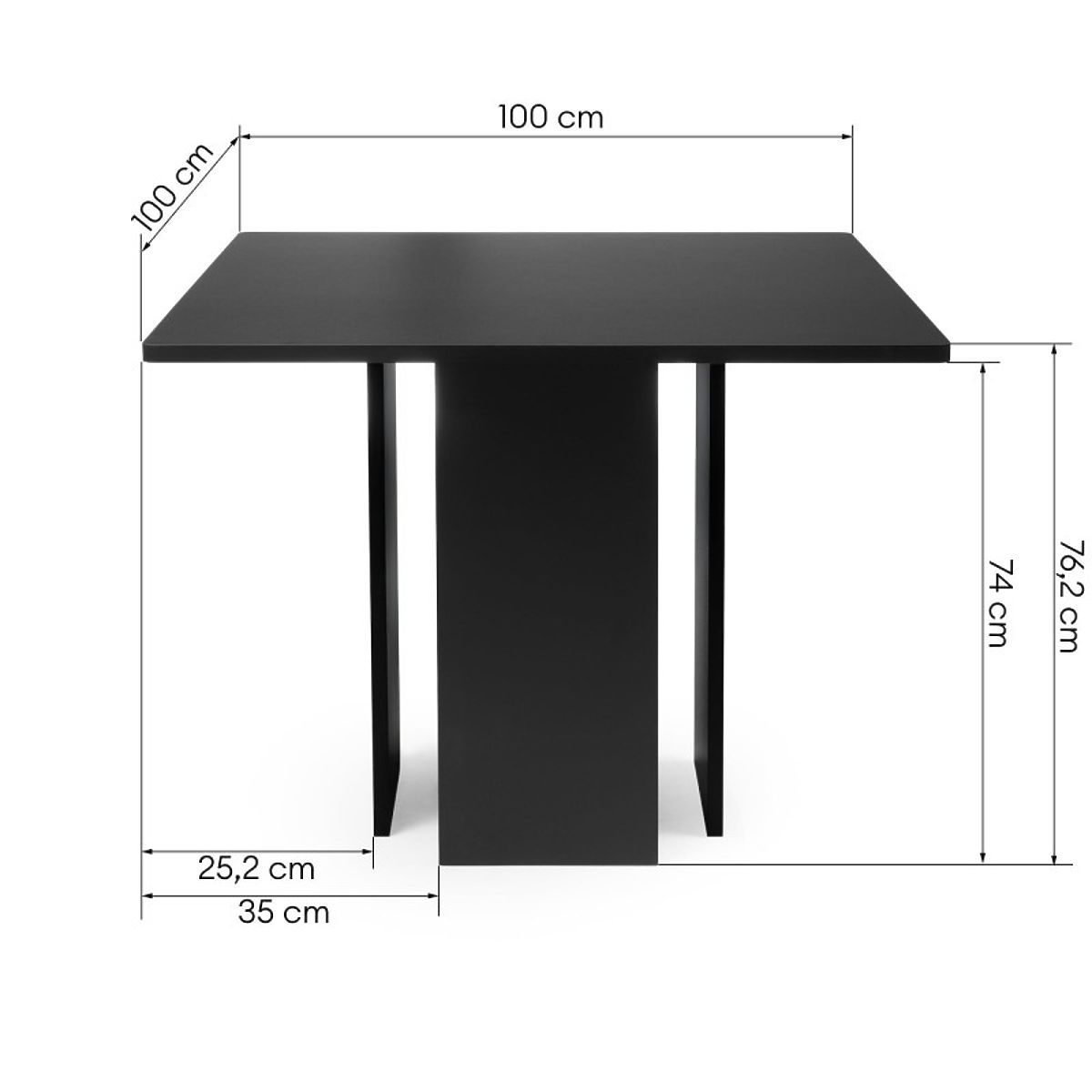 Čtvercový jídelní stůl Gasper v černé barvě s moderním designem. .. více