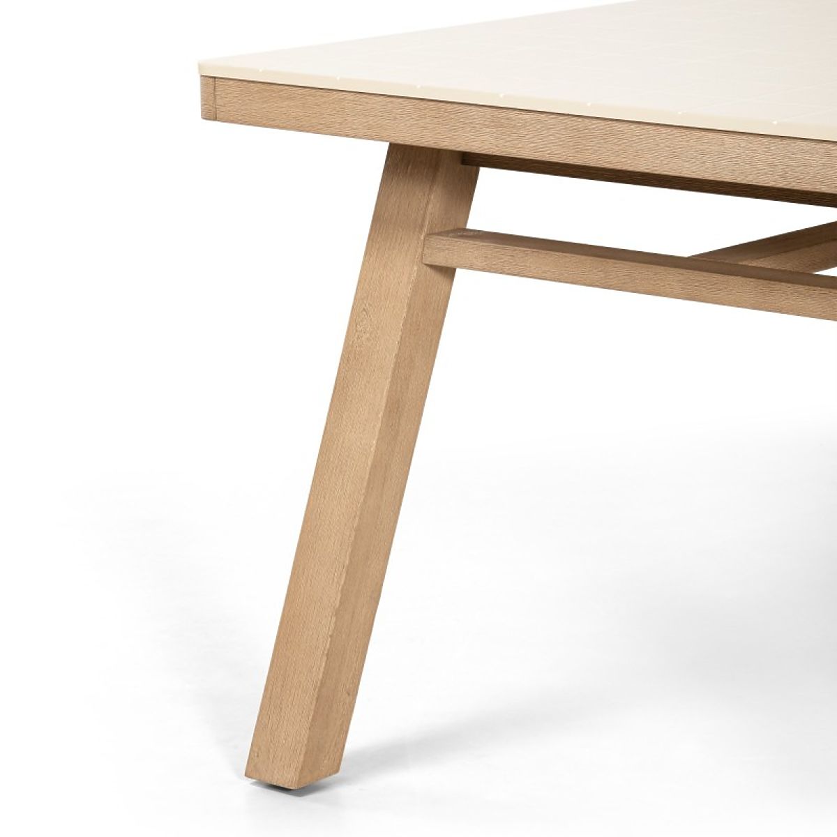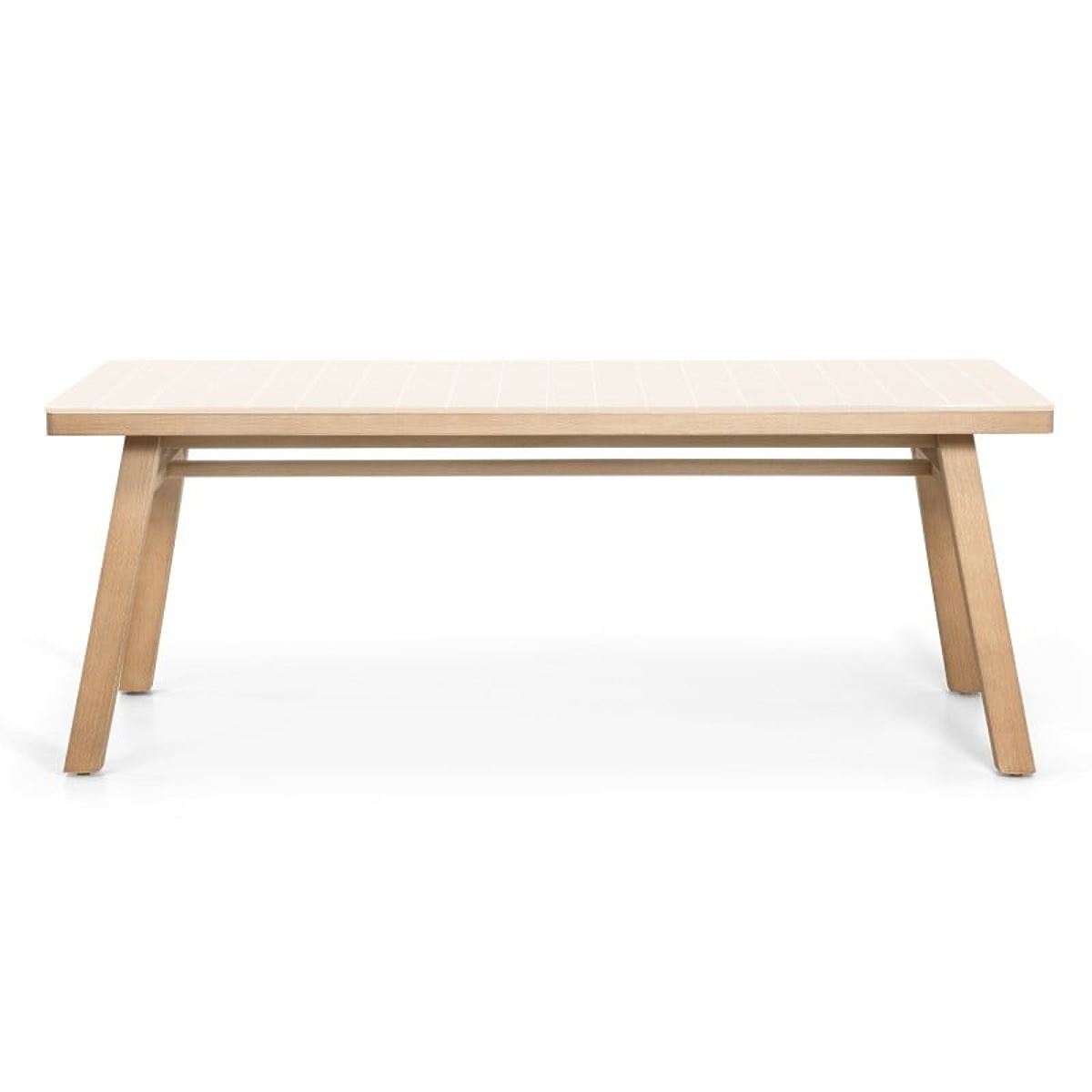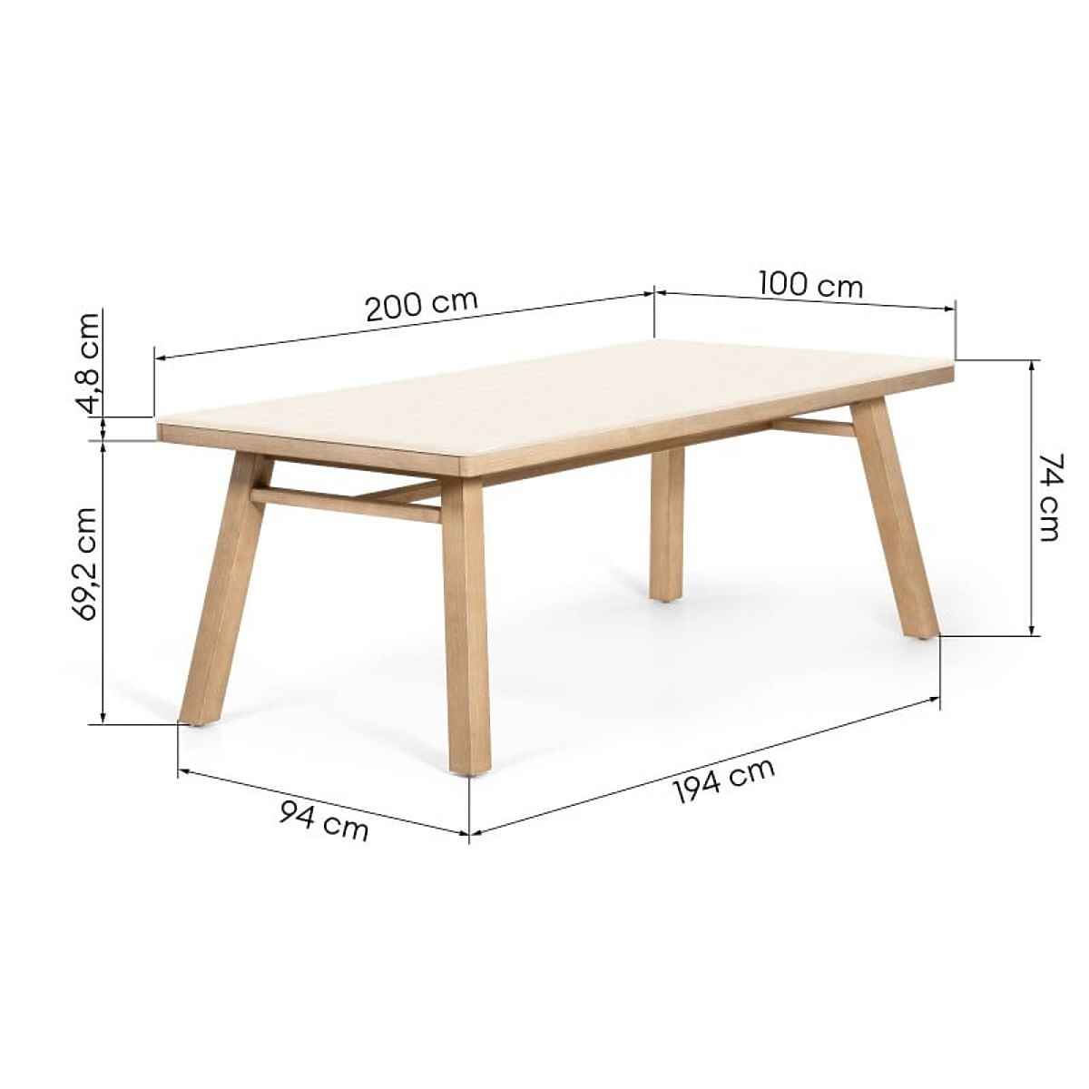 Lukafurniture.cz » Zahradní nábytek / Zahradní stoly / Zahradní stůl Wabi 200 cm s kamennou deskou, světlé akáciové dřevo/světle béžový, obdélníkový