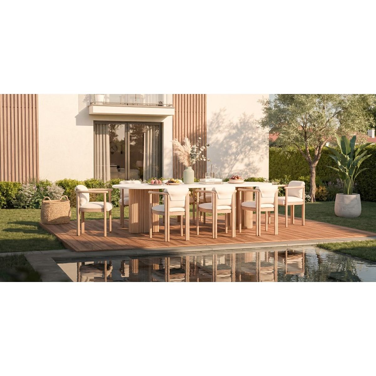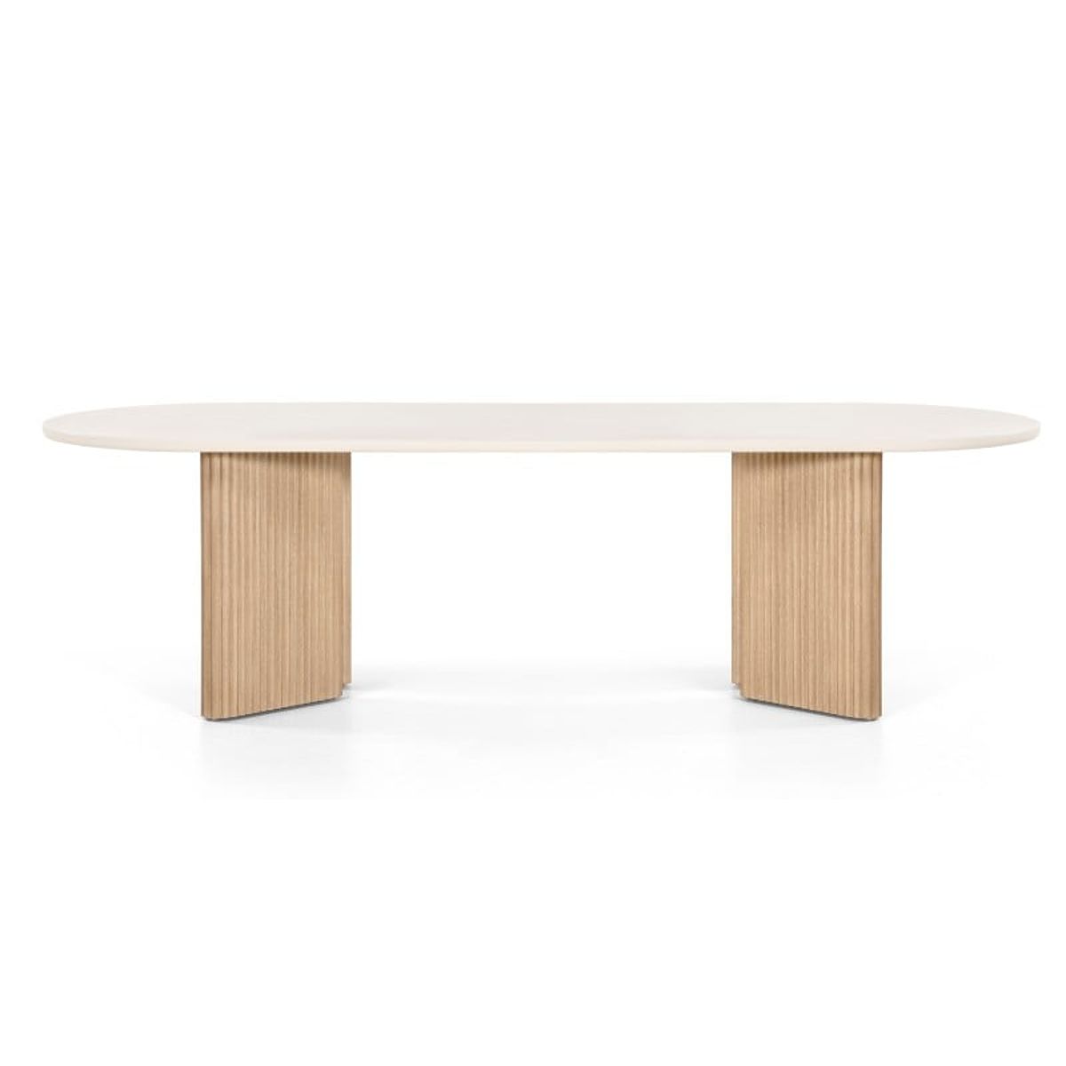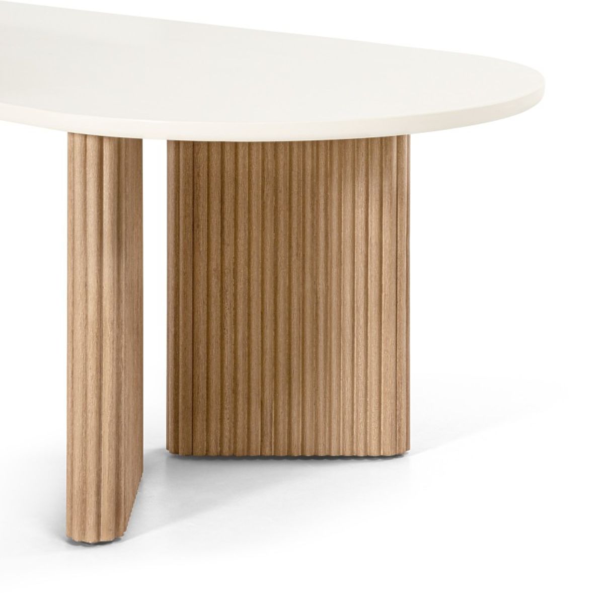 Lukafurniture.cz » Zahradní nábytek / Zahradní stoly / Zahradní stůl Komorebi 270 cm s kamennou deskou, světlé akáciové dřevo/světle béžová, oválný, lamely