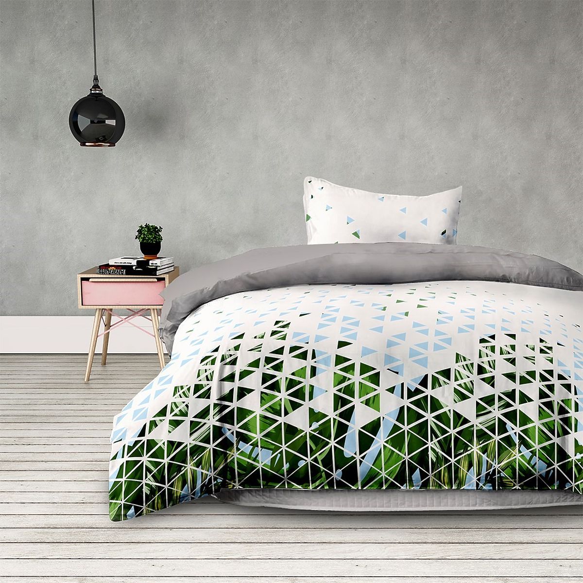 Zelené povlečení s rostlinným motivem v moderním stylu. .. více
