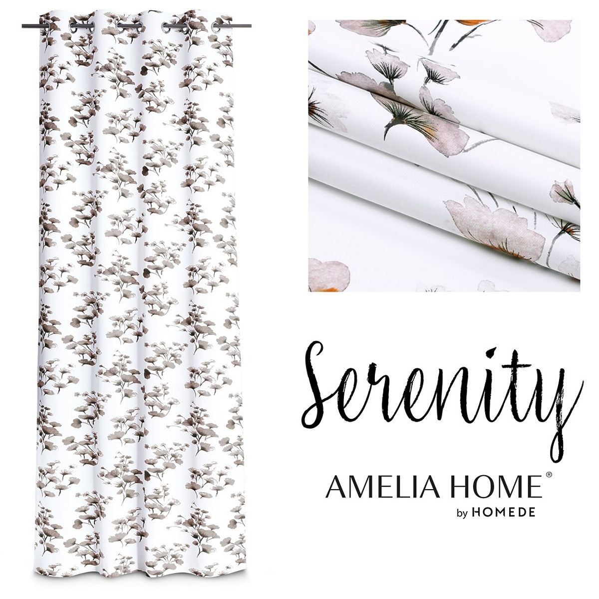 Lukafurniture.cz » Závěsy a záclony / Závěsy / Závěs SERENITY bílá barva tištěný rostlinný motiv klasický styl stříbrné kovové průchodky