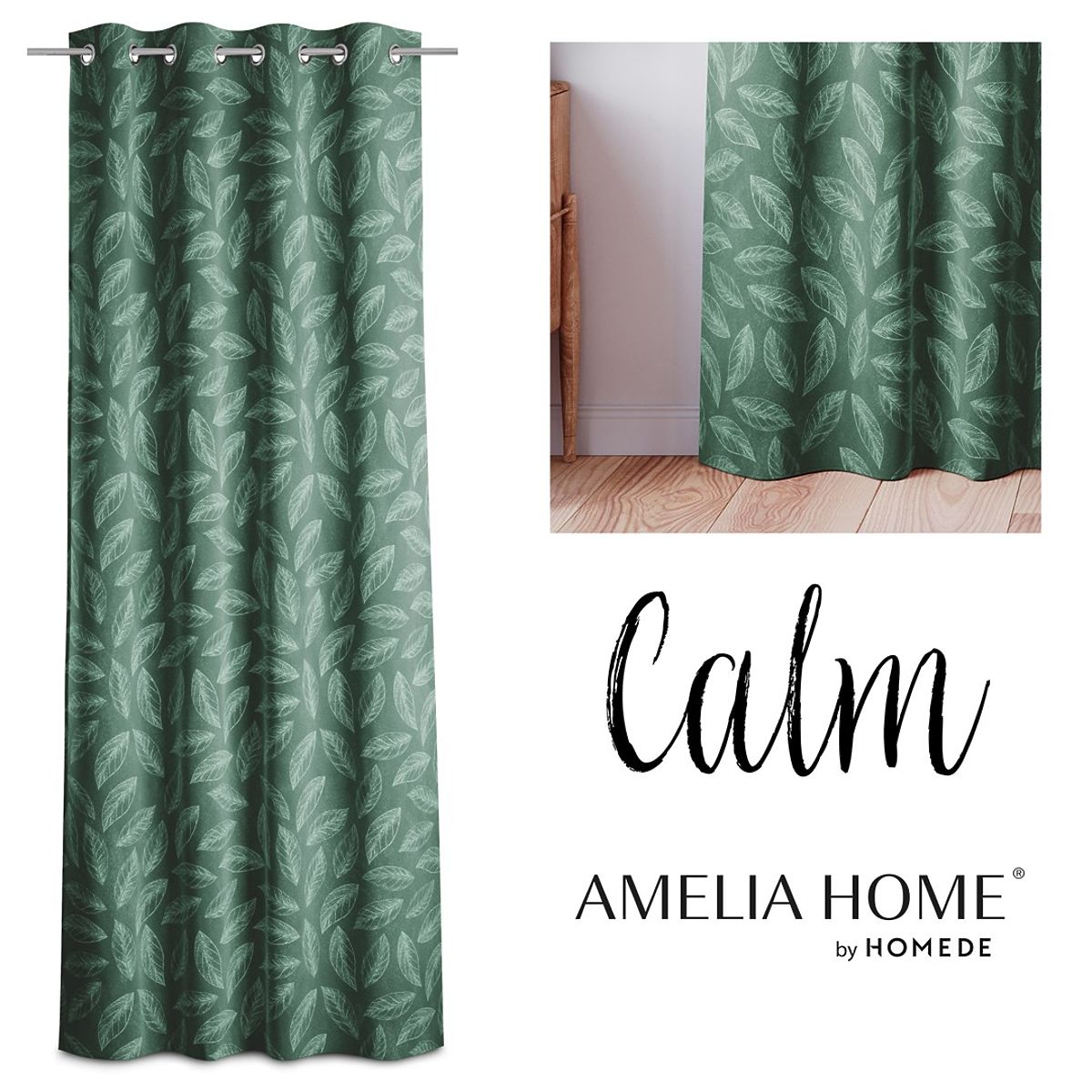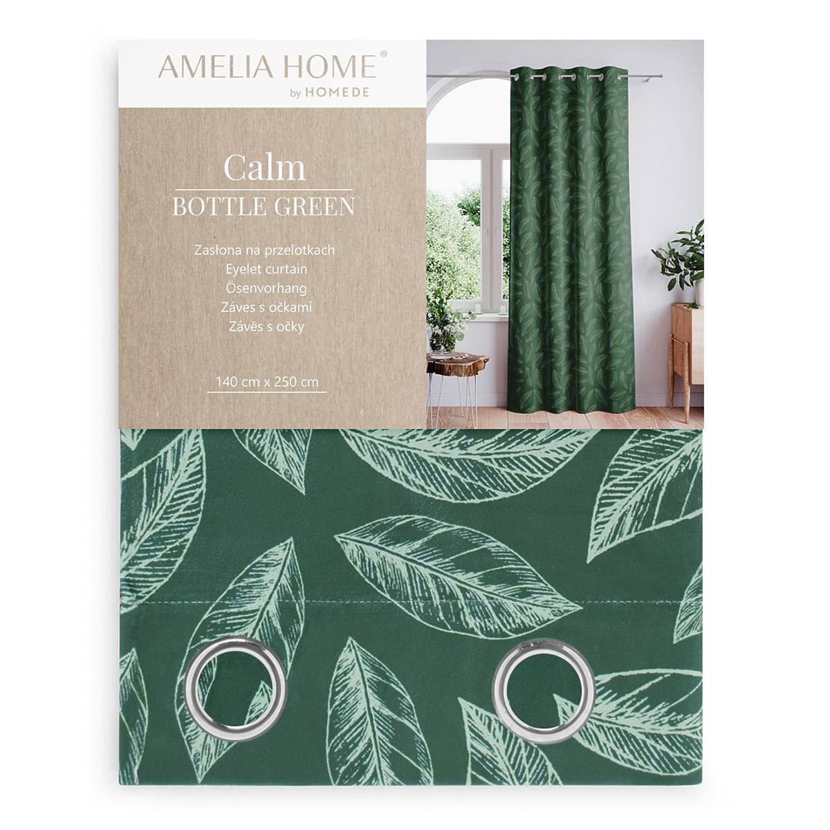 Lukafurniture.cz » Závěsy a záclony / Závěsy / Závěs CALM barva lahvově zelená tištěný rostlinný motiv klasický styl stříbrné kovové kroužky