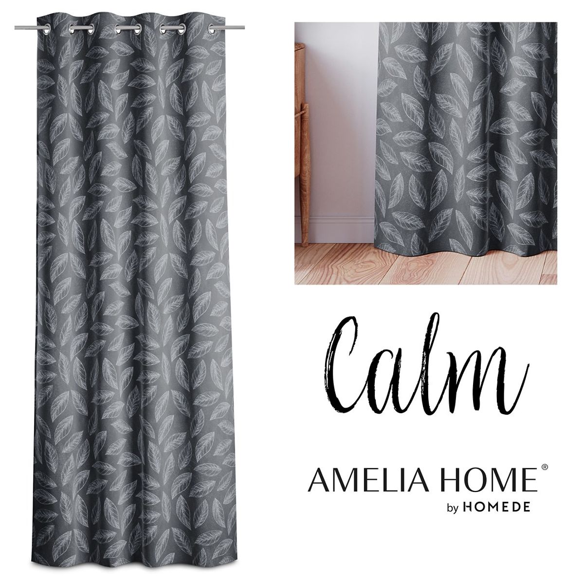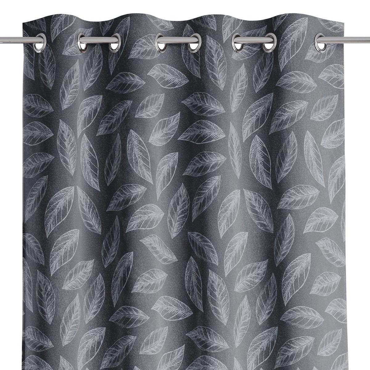 Lukafurniture.cz » Závěsy a záclony / Závěsy / Závěs CALM barva grafitová tištěný rostlinný motiv klasický styl stříbrné kovové průchodky