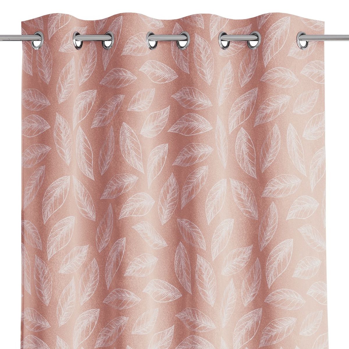 Lukafurniture.cz » Závěsy a záclony / Závěsy / Závěs CALM barva pudrová růžová tištěný rostlinný motiv klasický styl stříbrné kovové průchodky sr