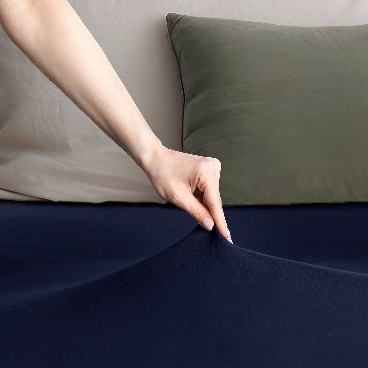 Prostěradlo z kolekce Amber v námořnické modré barvě z bavlněného jersey materiálu. .. více