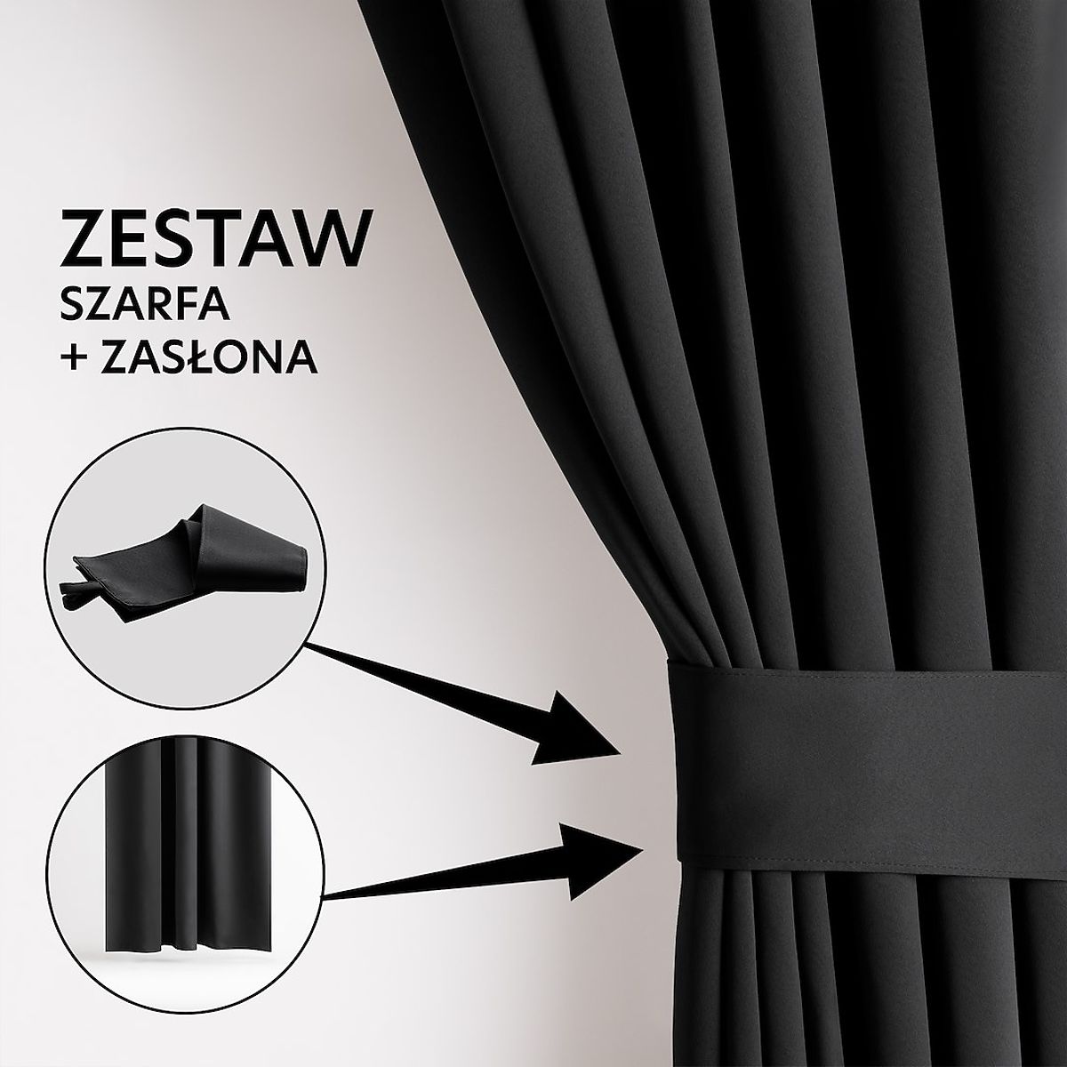 Lukafurniture.cz » Závěsy a záclony / Závěsy / RESTILO závěs BLACKOUT barva černá, šerpa na stažení, klasický styl, stříbrné průchodky, materiál bl