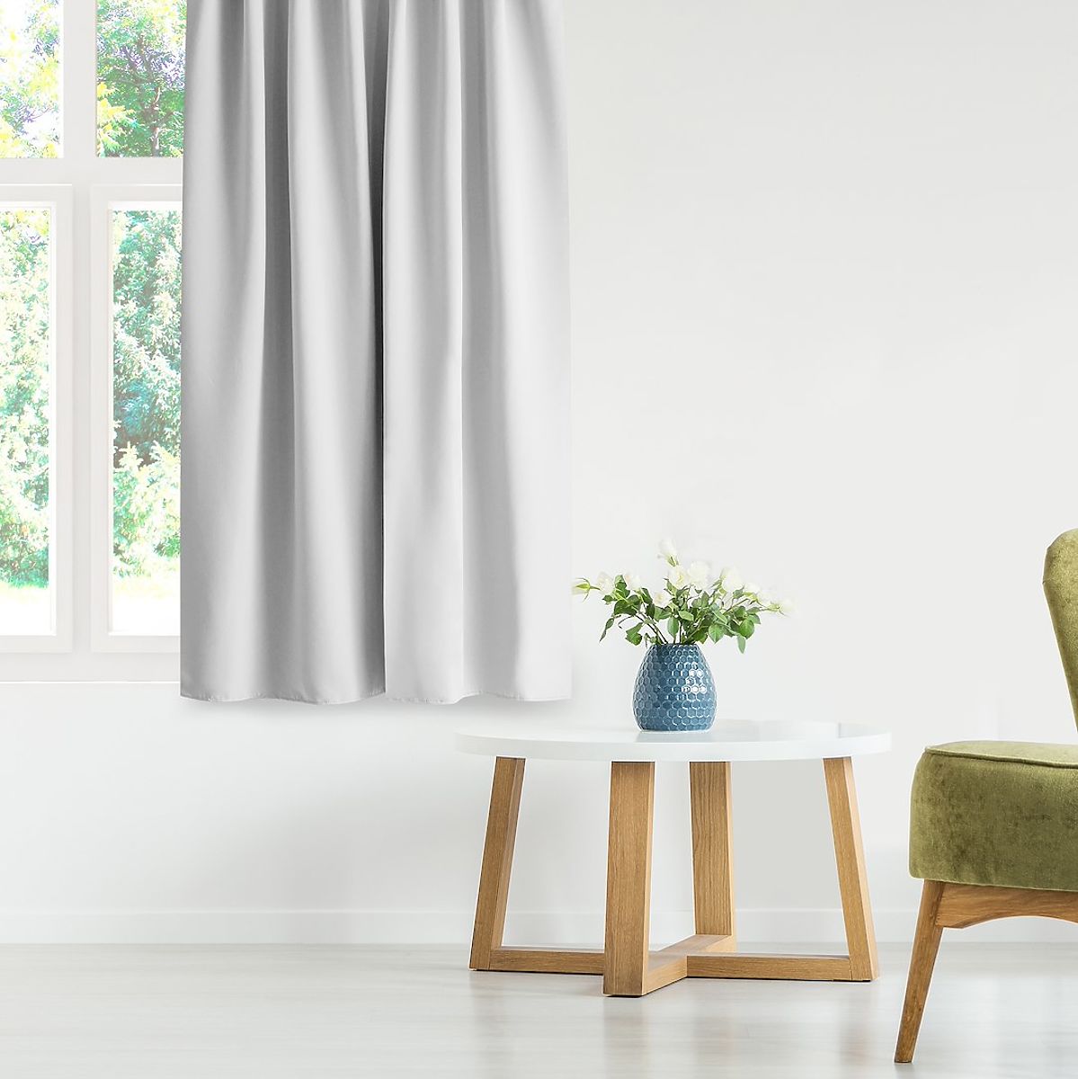 Závěs BLACKOUT s bílou barvou a stříbrnými kroužky. .. více