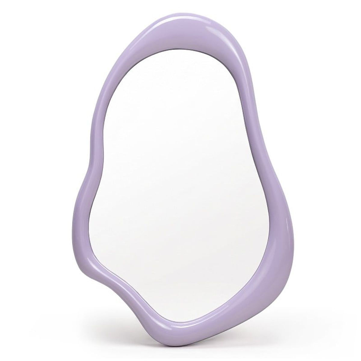 Zrcadlo s nepravidelným lila rámem ve vysokém lesku. .. více