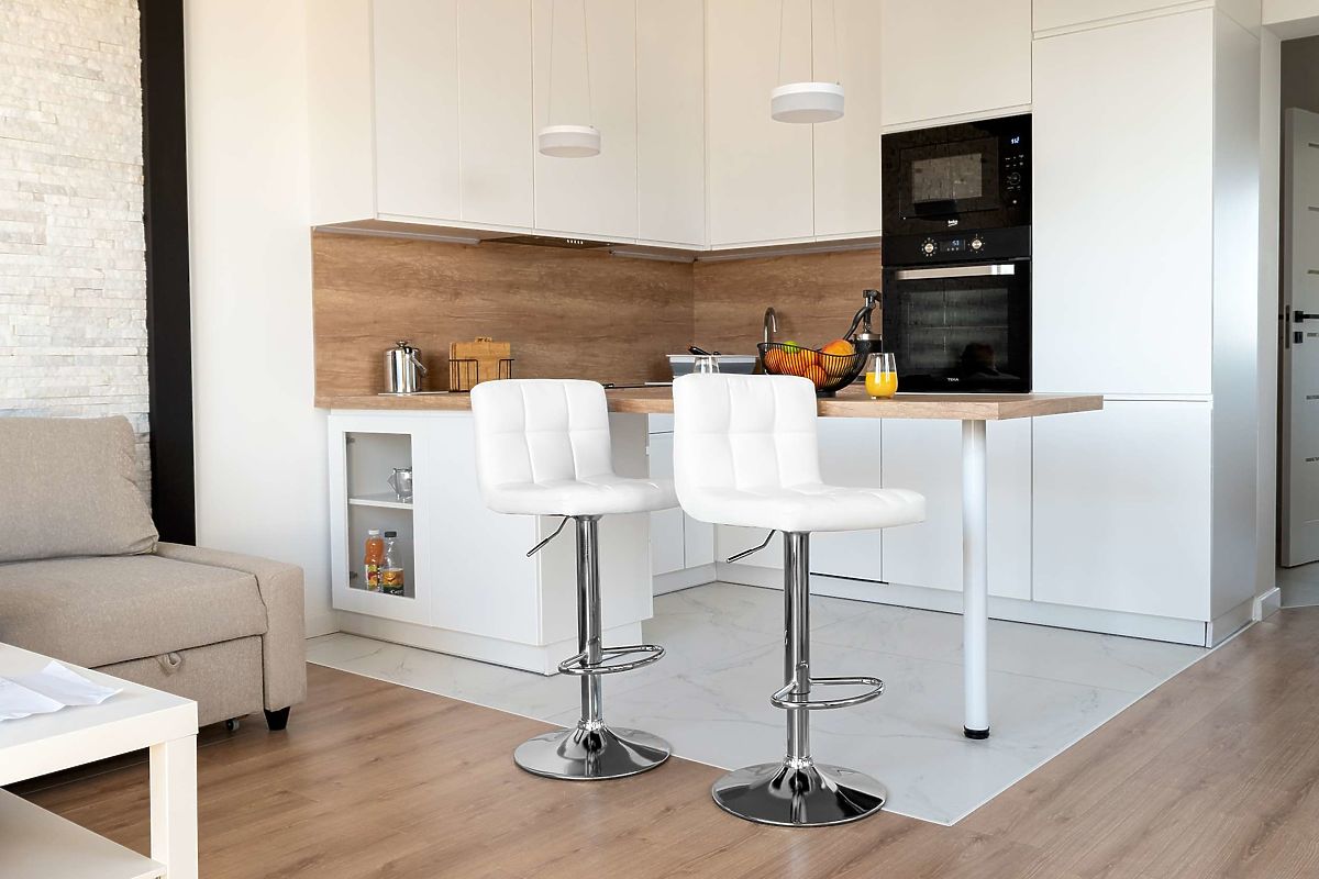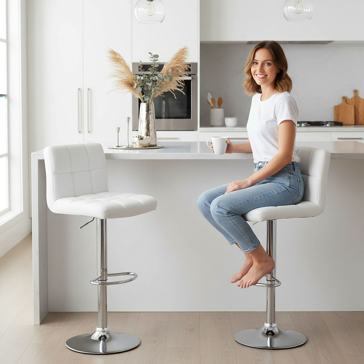 Otočná barová židle Arako je skvělým řešením pro ty, kteří hledají eleganci, funkčnost a pohodlí v jednom. Díky modernímu designu a kvalitnímu zpracování se ideálně hodí do domácích prostor. Komfortní sedadlo z ekokůže a pohodlná opěrka na nohy zajišťují pohodlí i při dlouhodobém používání. Otočná konstrukce a možnost nastavení výšky umožňují, aby se židle přizpůsobila každému uživateli a různým interiérovým uspořádáním.